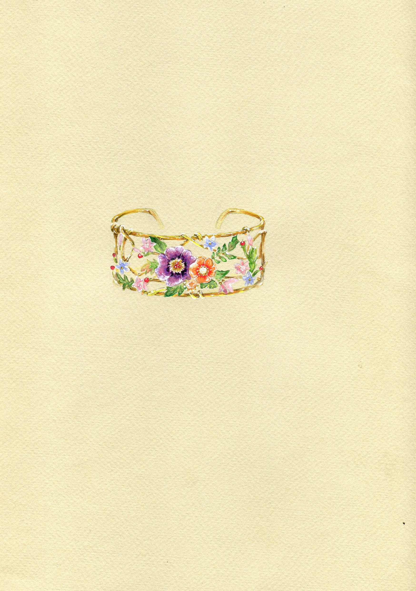 y naît d’un dessin tout droit sorti de l’imagination des créateurs. Comme en haute joaillerie, les pièces sont « gouachées ». Les bijoux sont ensuite fabriqués et subtilement peints à la main.