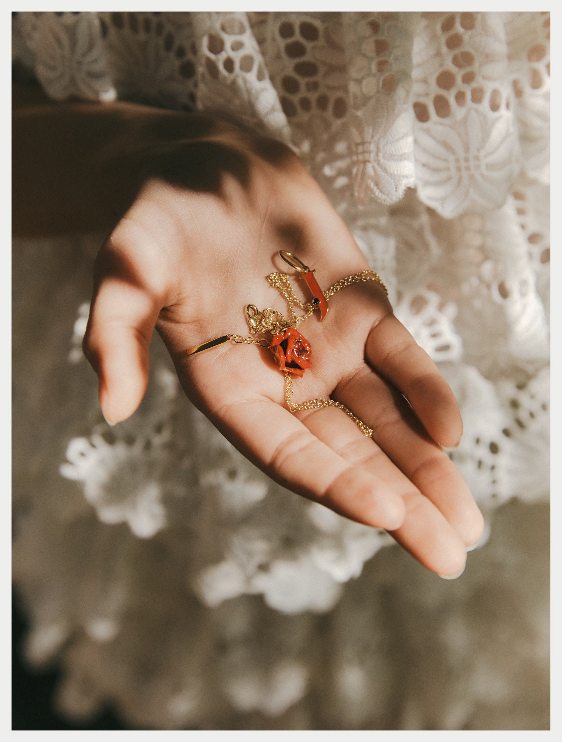 Alliant l’élégance des bijoux Les Néréides à la créativité de Rachel Bakewell, cette collection rend hommage aux liens qui unissent les femmes et leurs proches.