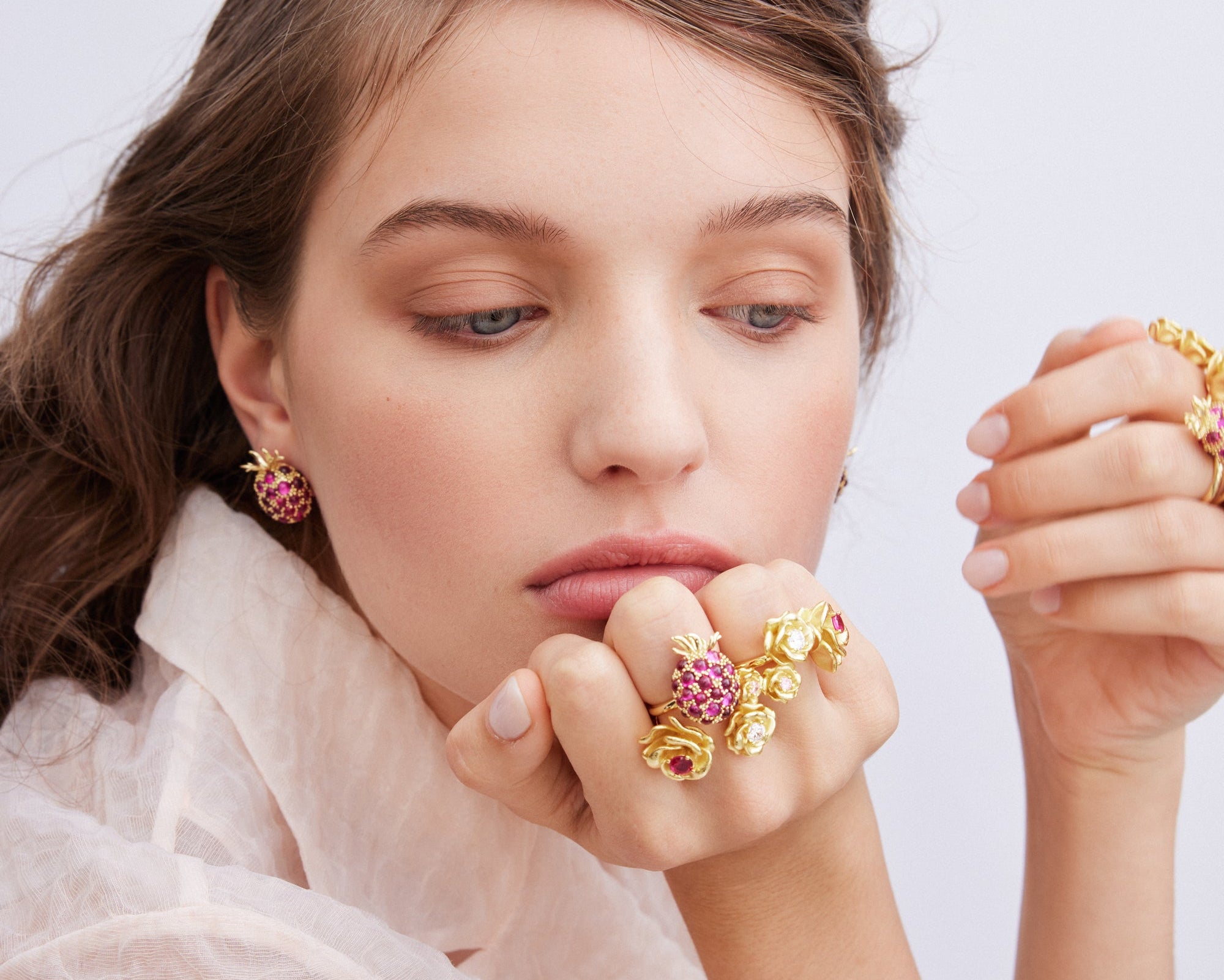 Bague ajustable roses dorées Mona Lisa et pierres rondes