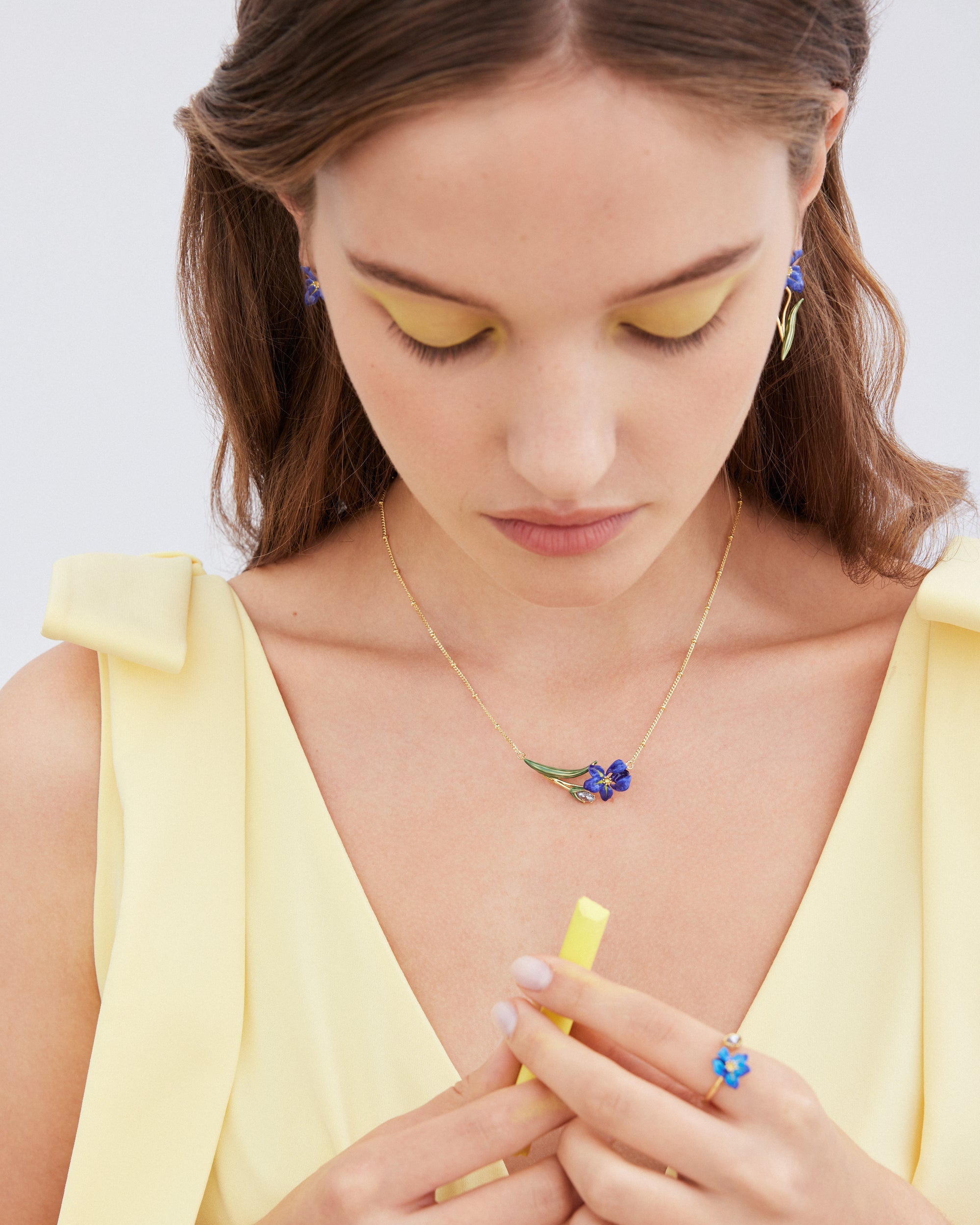 Collier Fin Iris de Sibérie et Verre Facetté