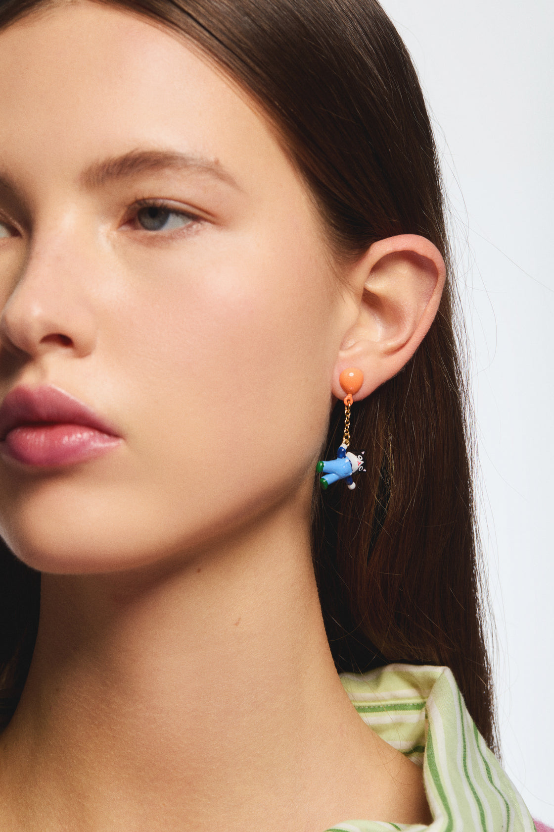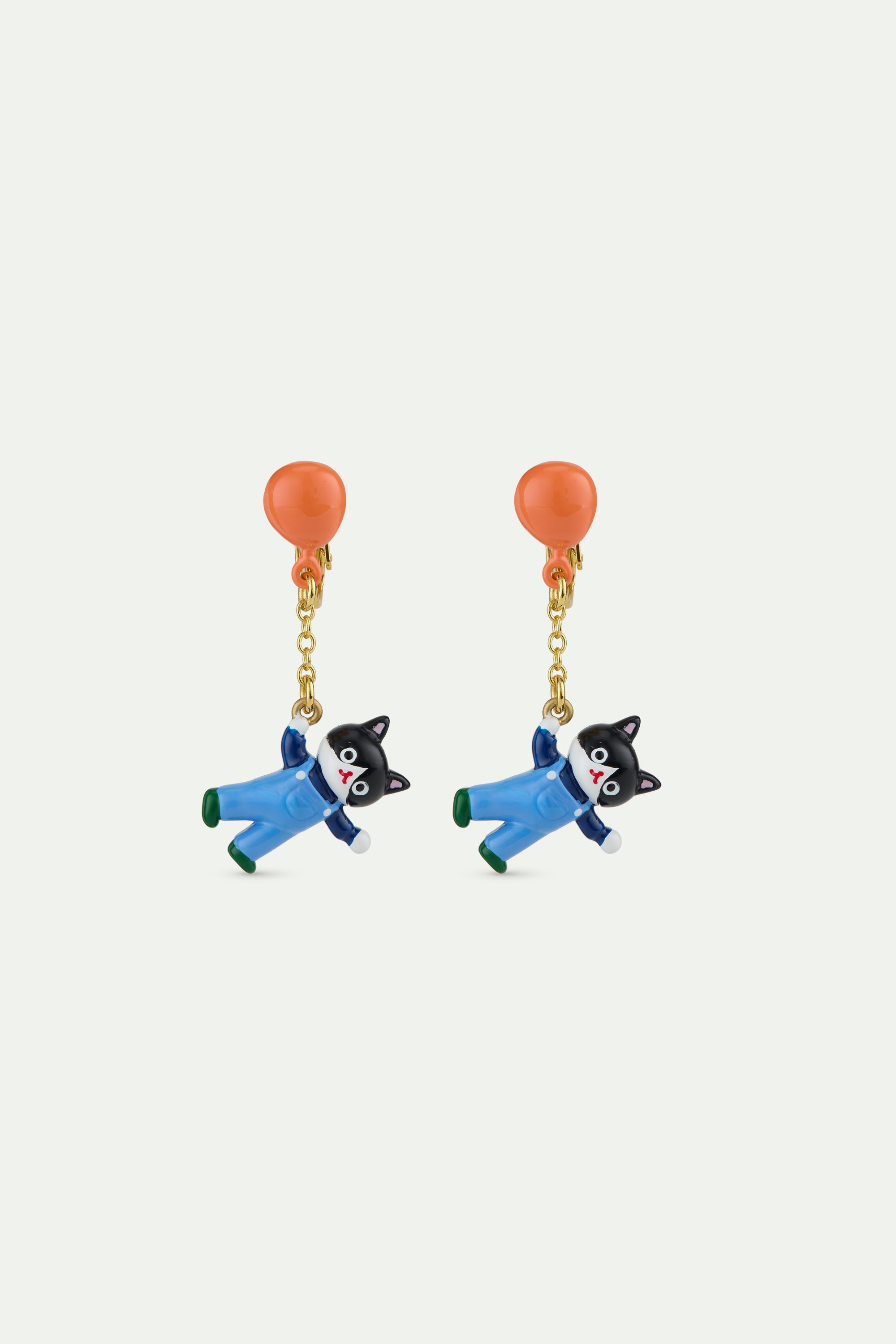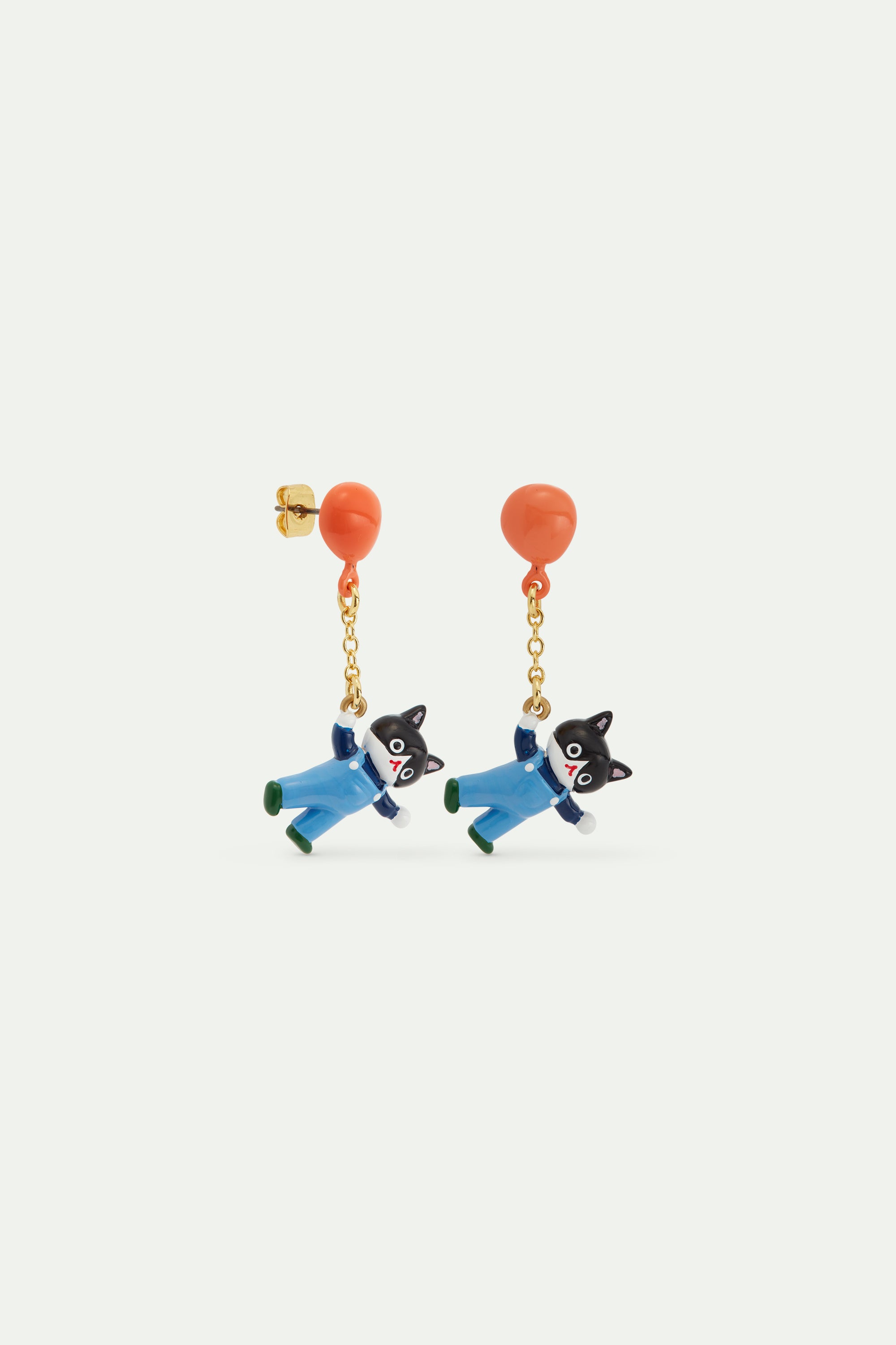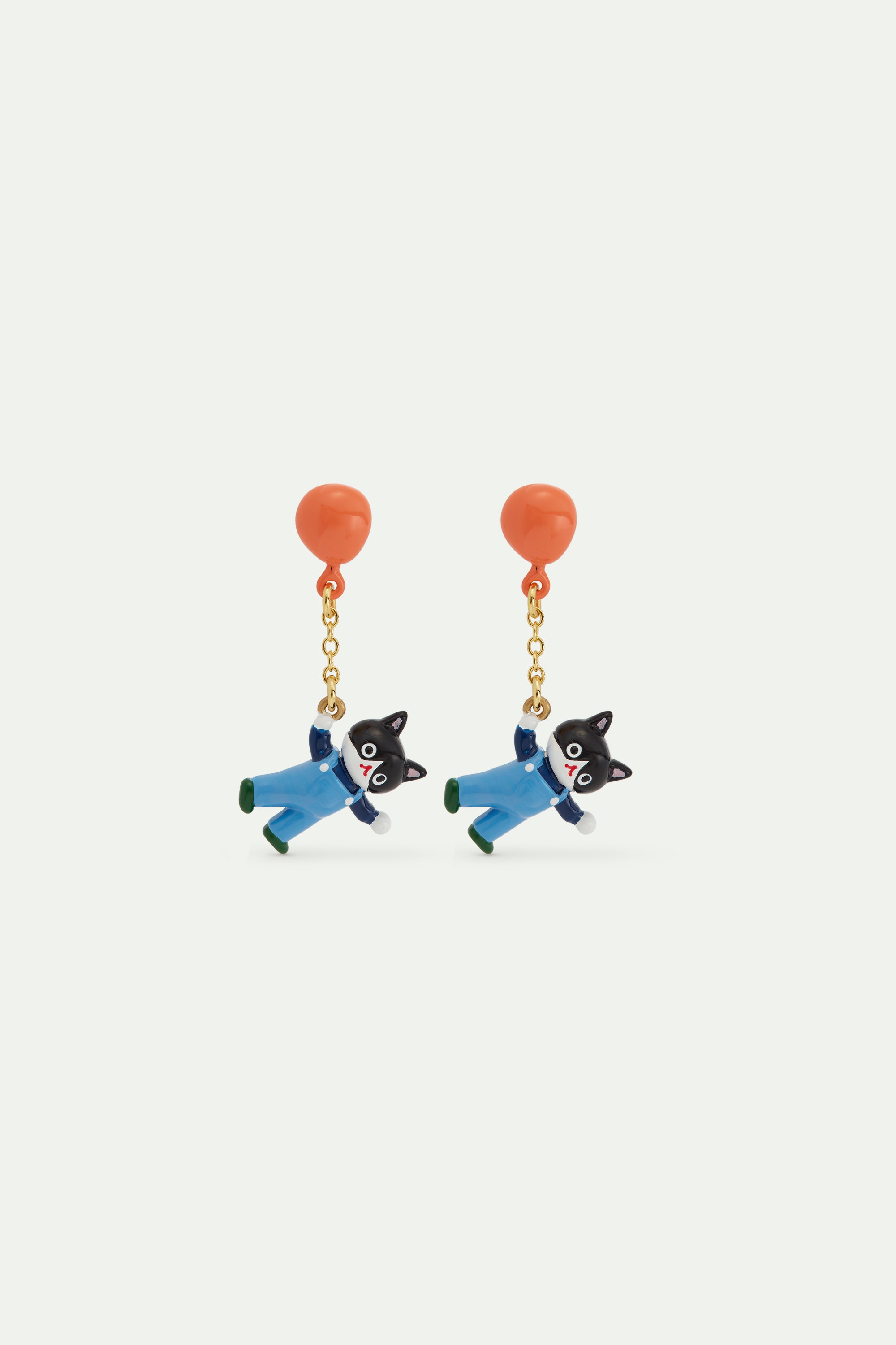 Gold-plated brass dangle earrings featuring a black cat suspended from a balloon, hand-enamelled.The Happy Picnic collection follows a cat family on a sunny day in Paris, together with their friend...See more
