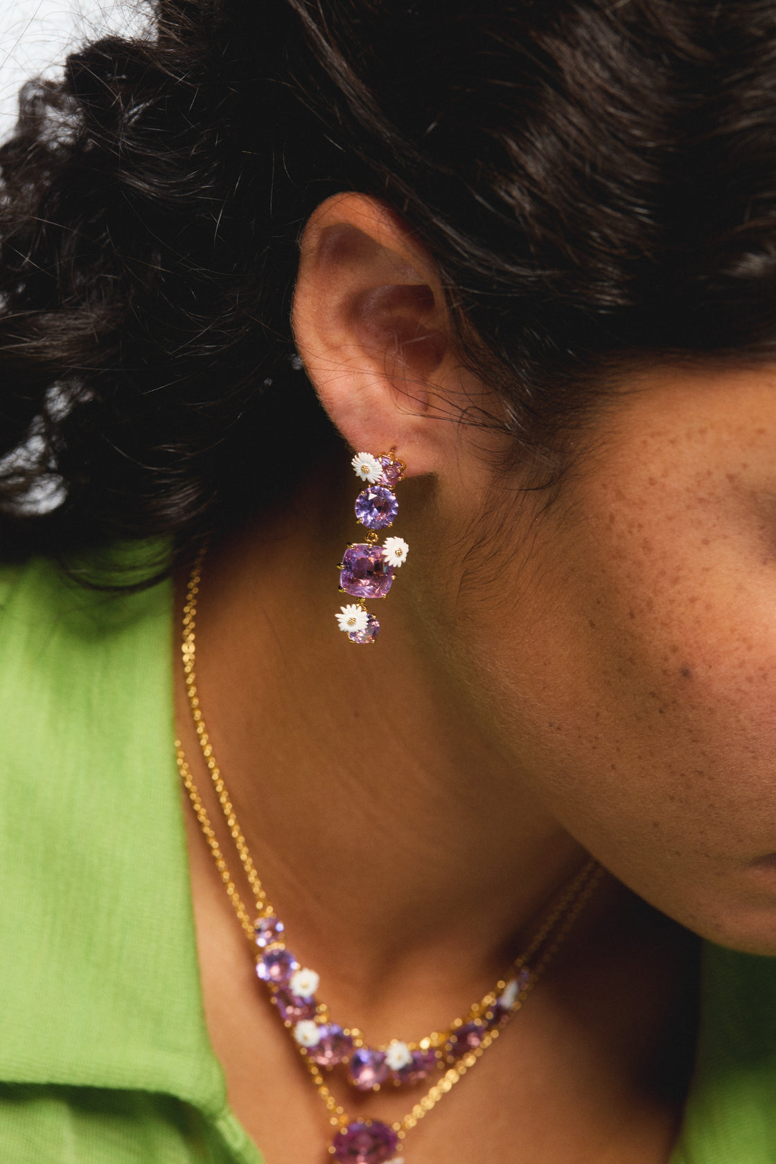 Pendientes colgantes flores 4 piedras La Diamantine lavanda y margaritas
