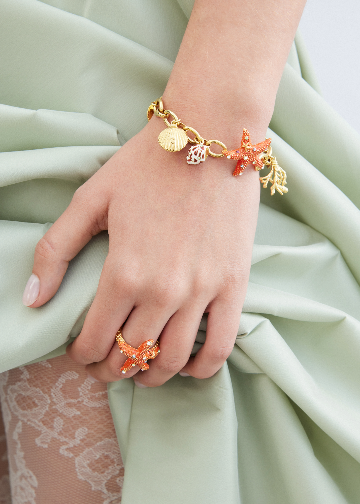 Bracelet doré étoile de mer et pendentifs coquillages