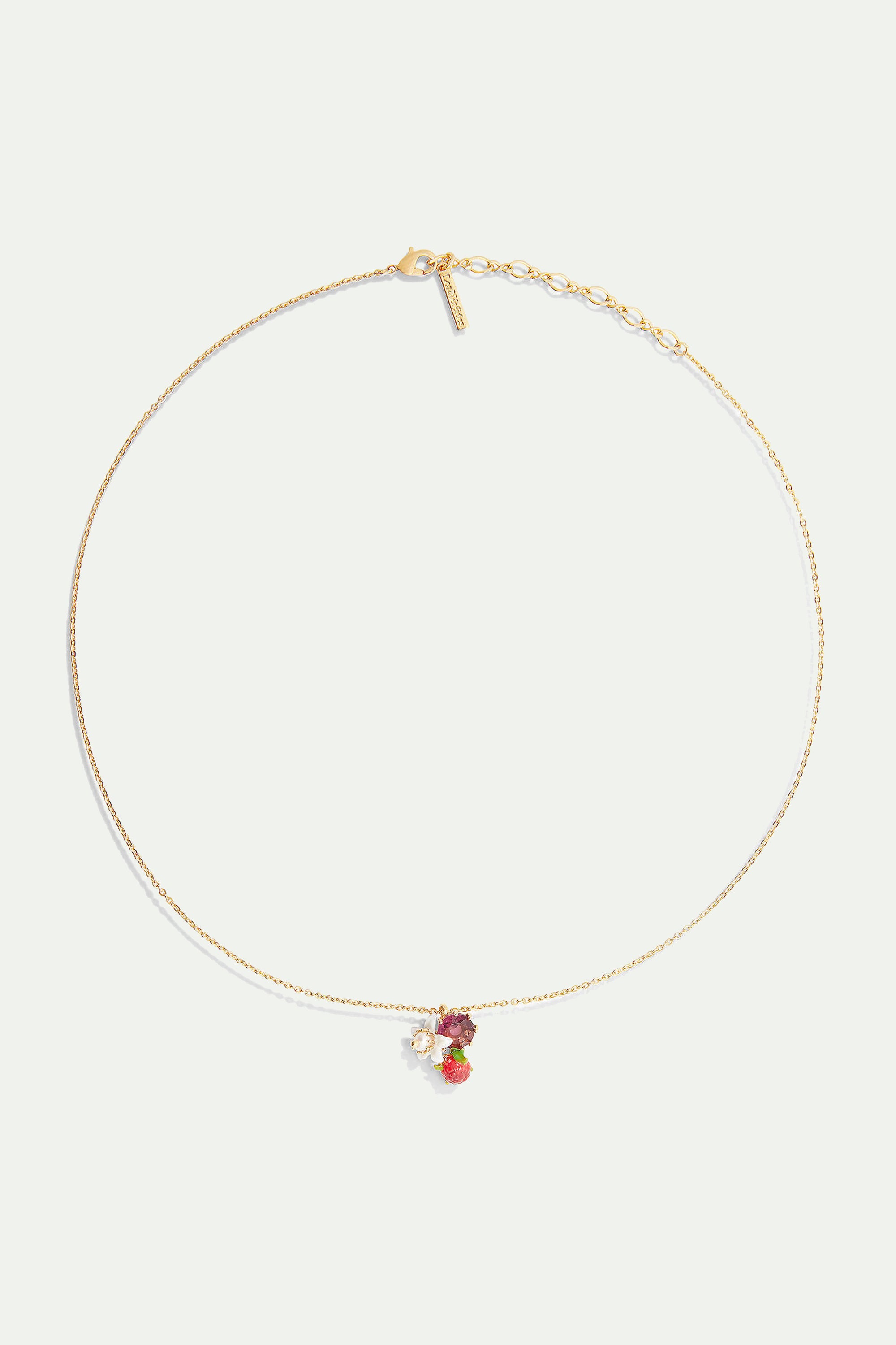 Collier plastron fraise des bois, fleurs de fraisiers et bourdon