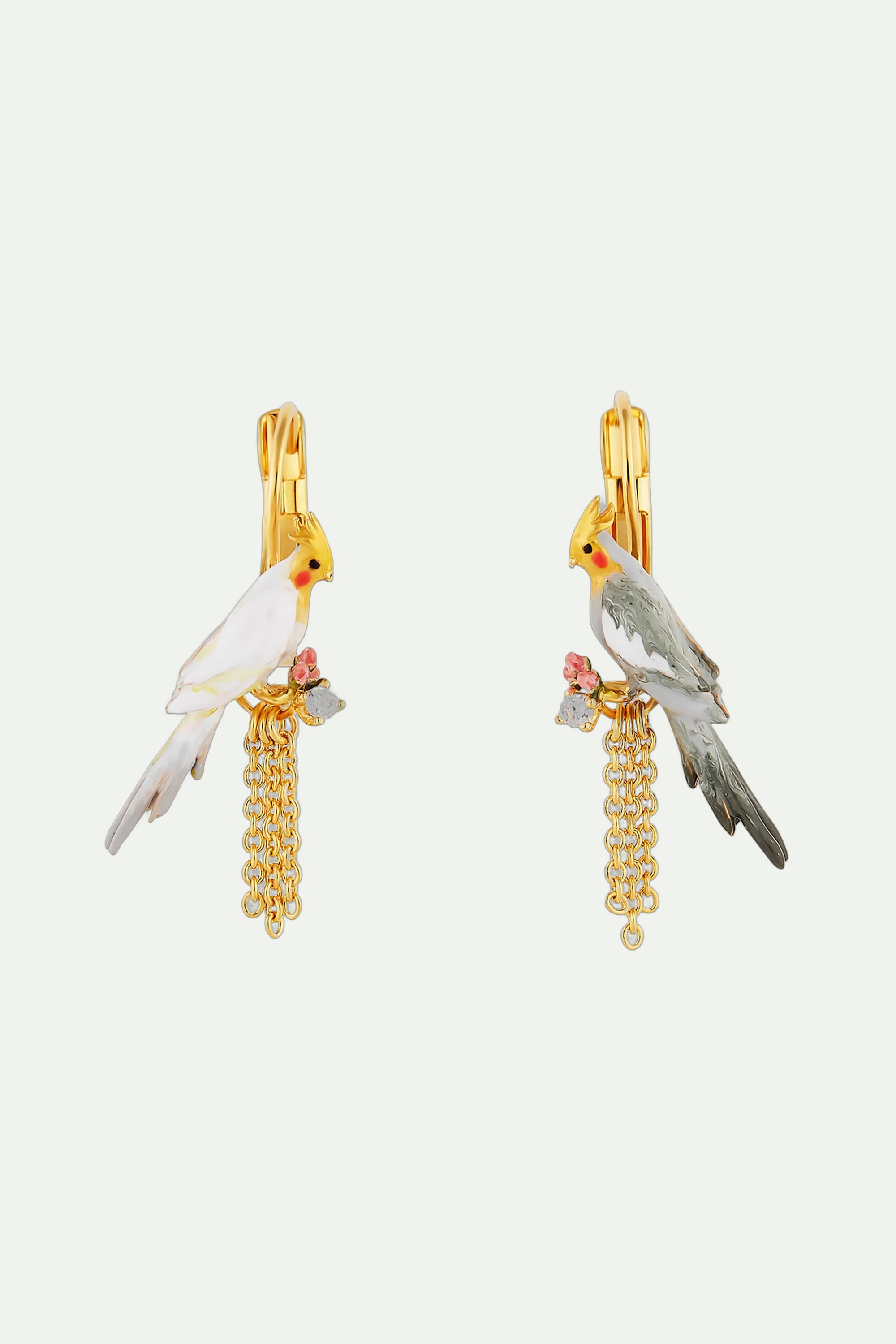 Boucles d'oreilles oiseau, souris, laine, ciseau, bouton bobine de fil et cristal taillé