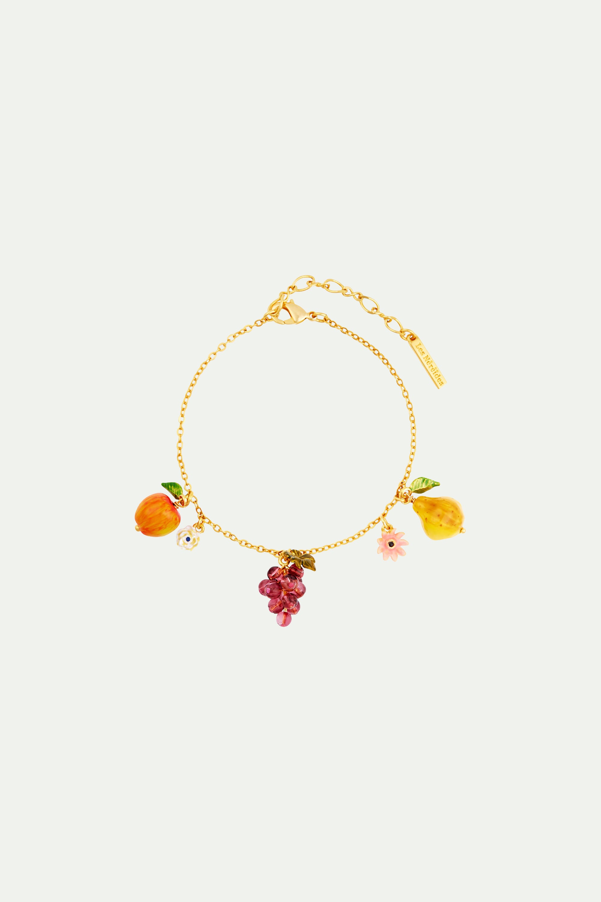 Bracelet charm's citrouille, bobine de fil et souris, cendrillon, horloge et soulier