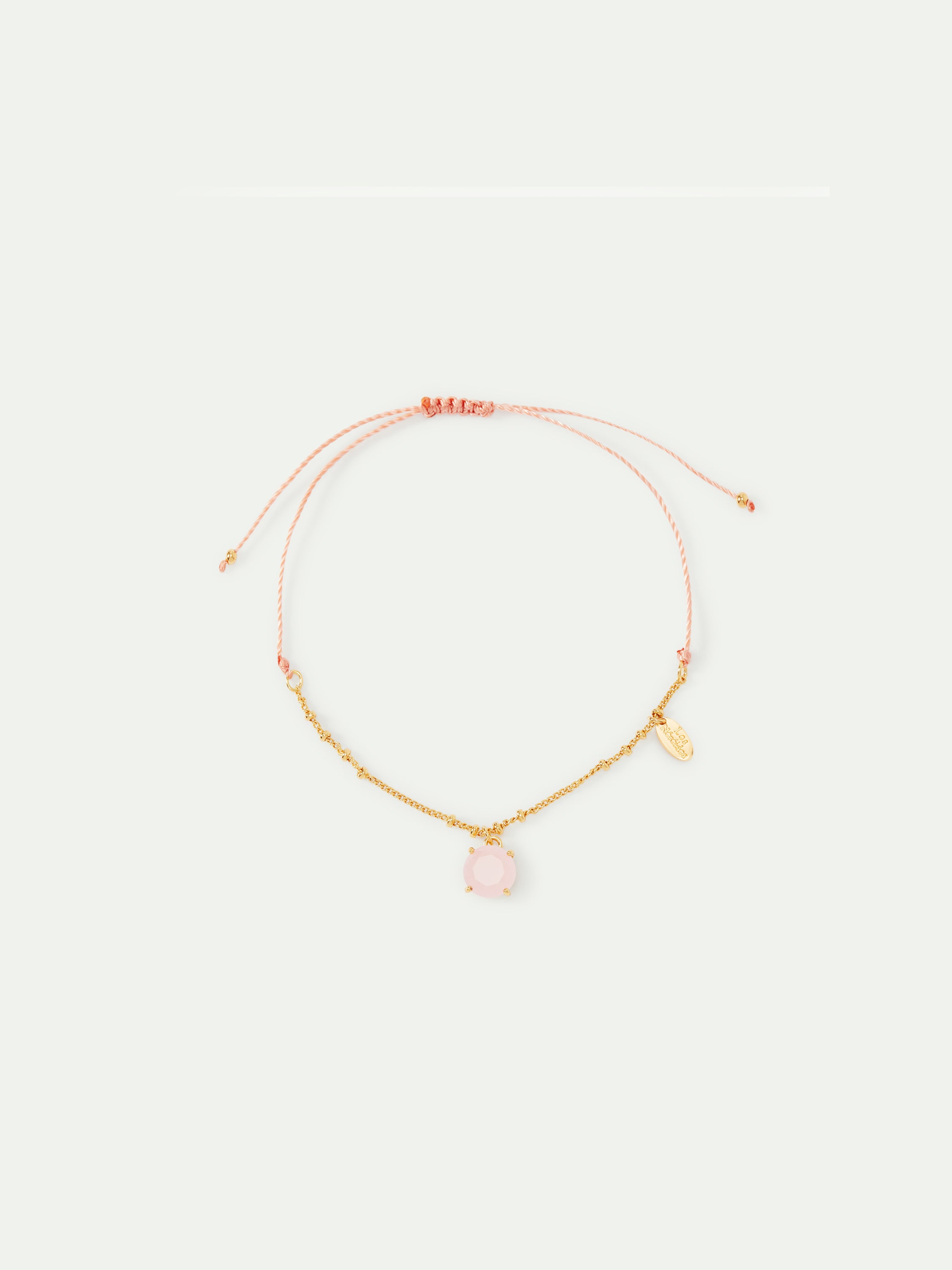 Bracelet fin beagle et pierre en verre taillé roseBracelet fin beagle et pierre en verre taillé rose