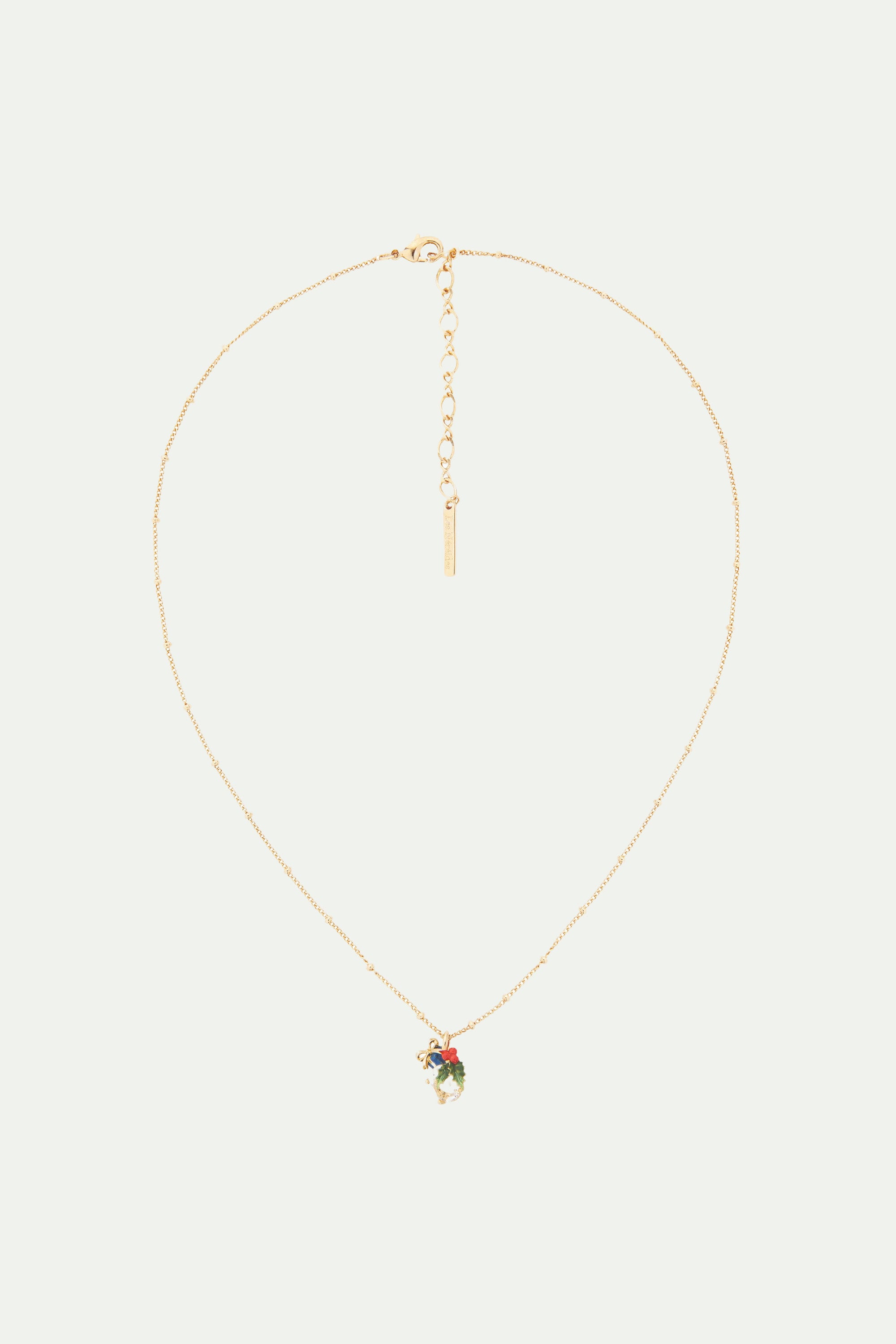 Collier pendentif Fleurs de patchouli et verre noir facetté