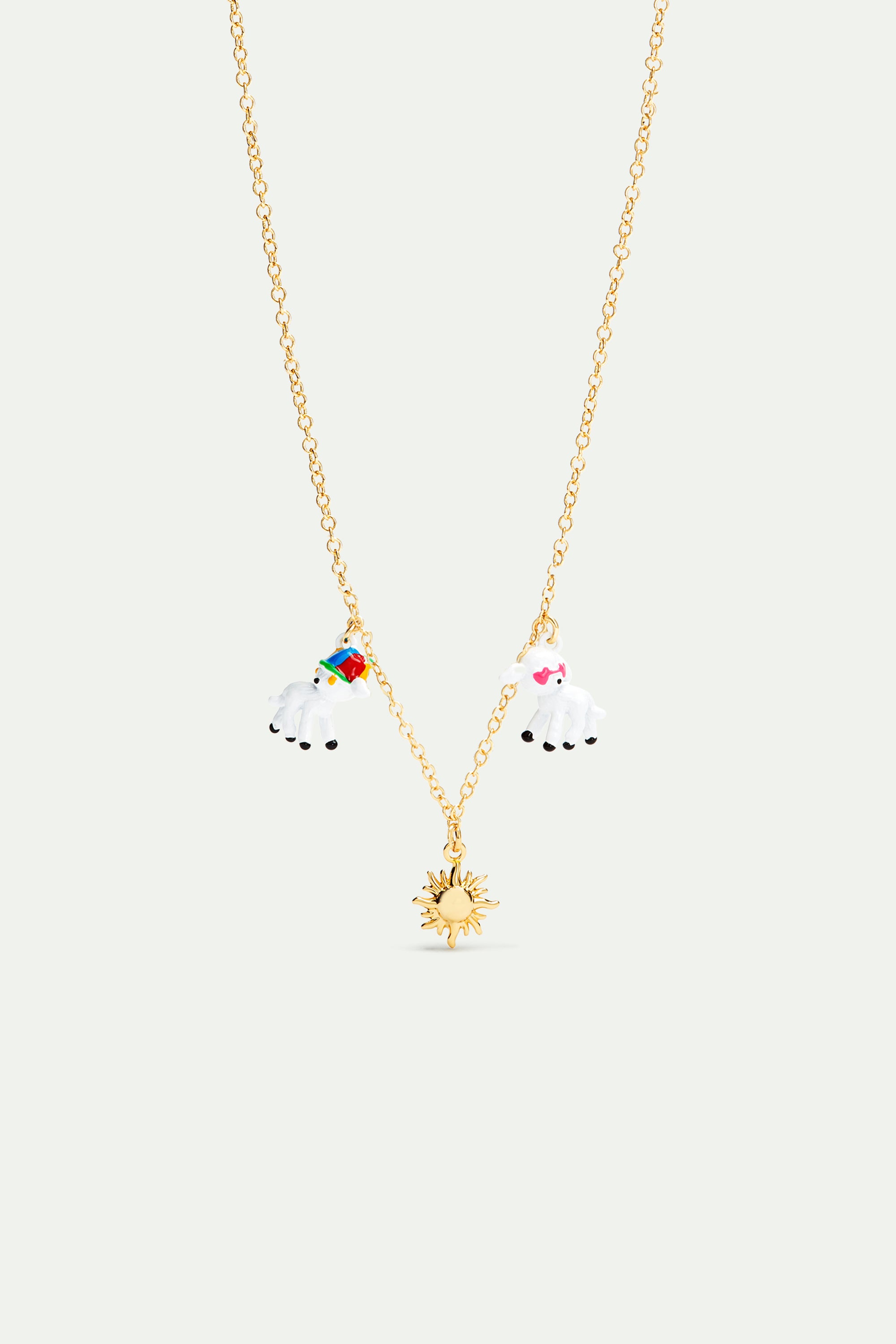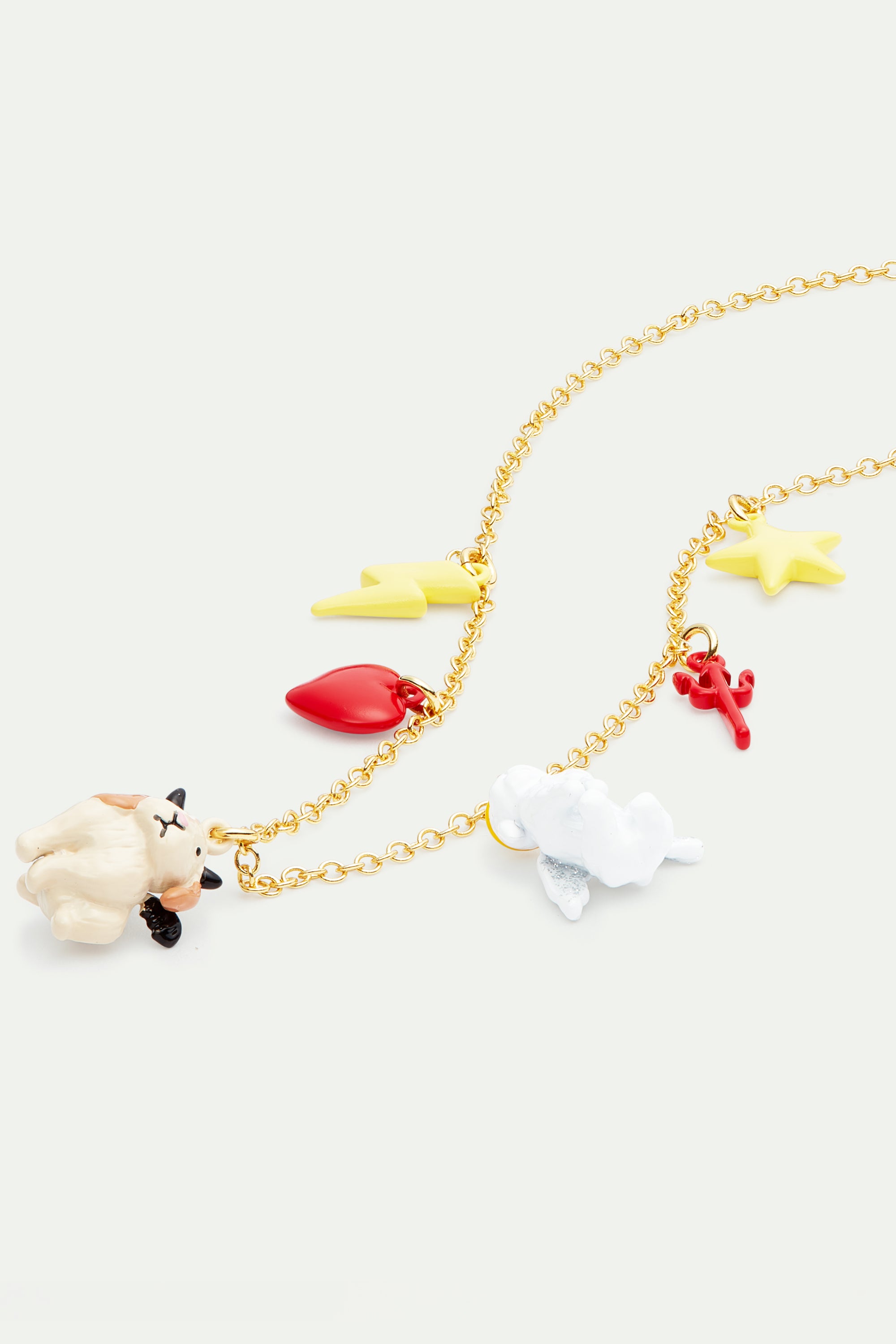 Collier pendentif le petit chaperon rouge, le renard et le lapin
