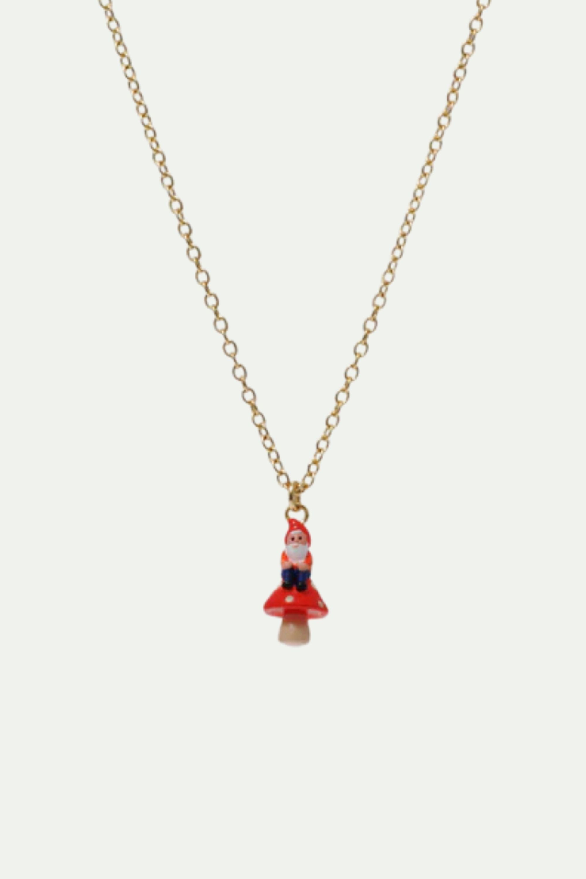 Collier fin alice, fleurs, champignons et lapin blanc