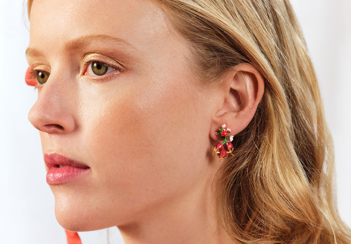 Boucles d'oreilles tiges corbeille de fruits et fleurs