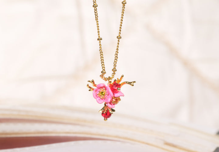 Collier pendentif quartz rose et composition florale