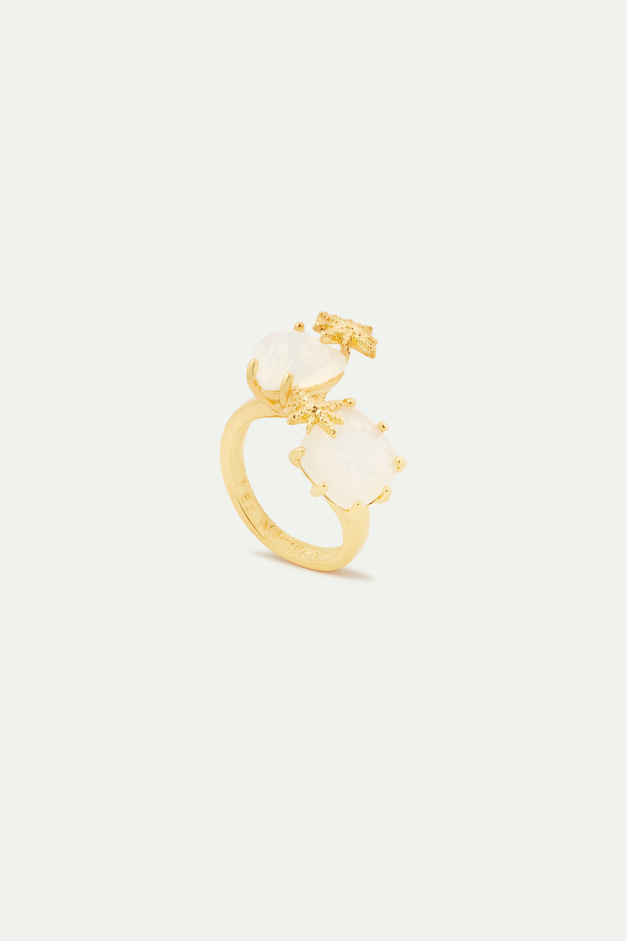 Adjustable ring you and me heart and square stones La Diamantine opalescent white and fine stars
