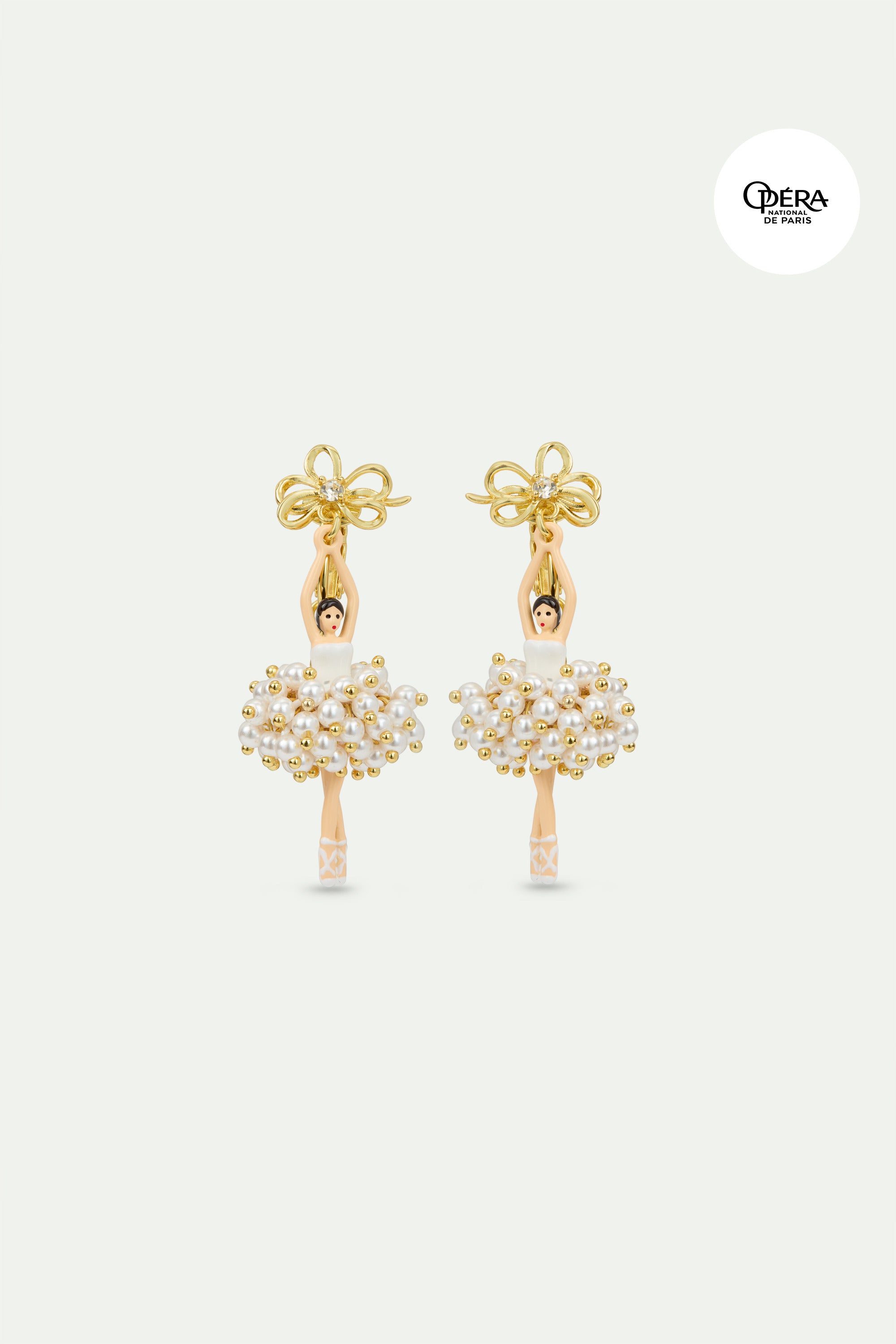 White and gold ballerina earrings