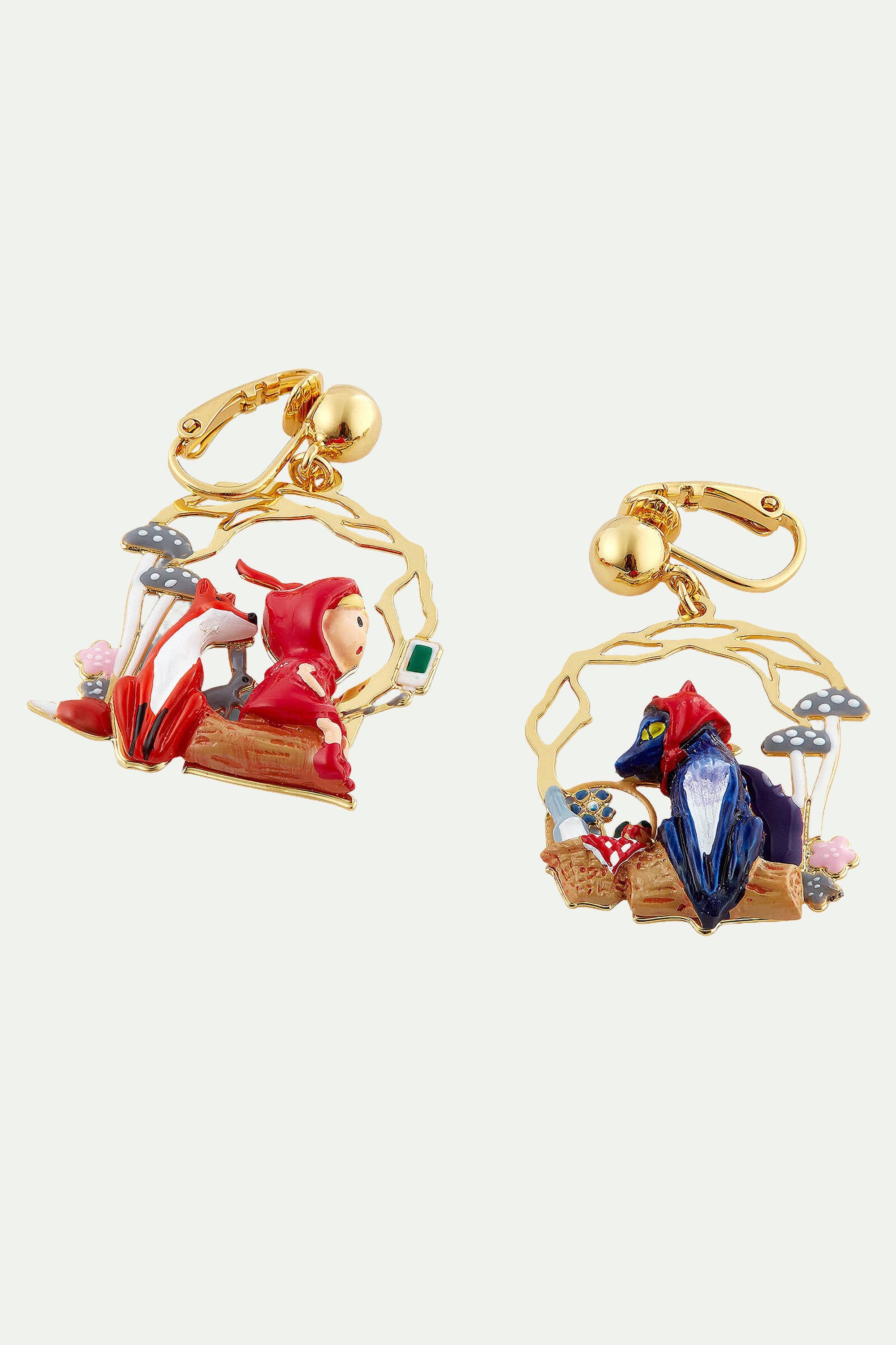Discover or rediscover the most famous walk in the woods, revisited by the house of costume jewellery in a modern version with childlike lines. This pair of clip-on earrings features the big bad wo...See more