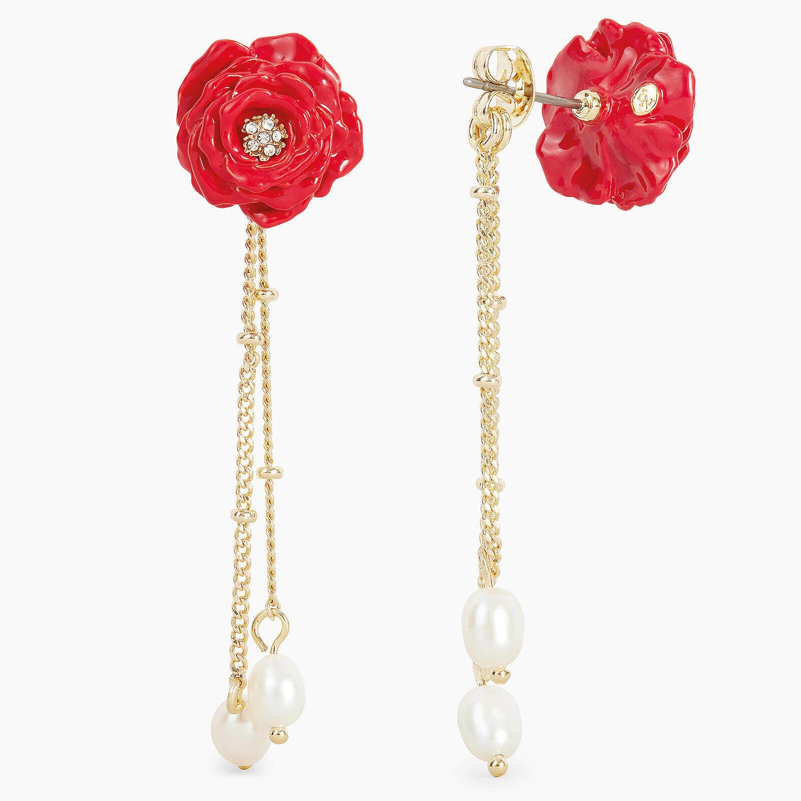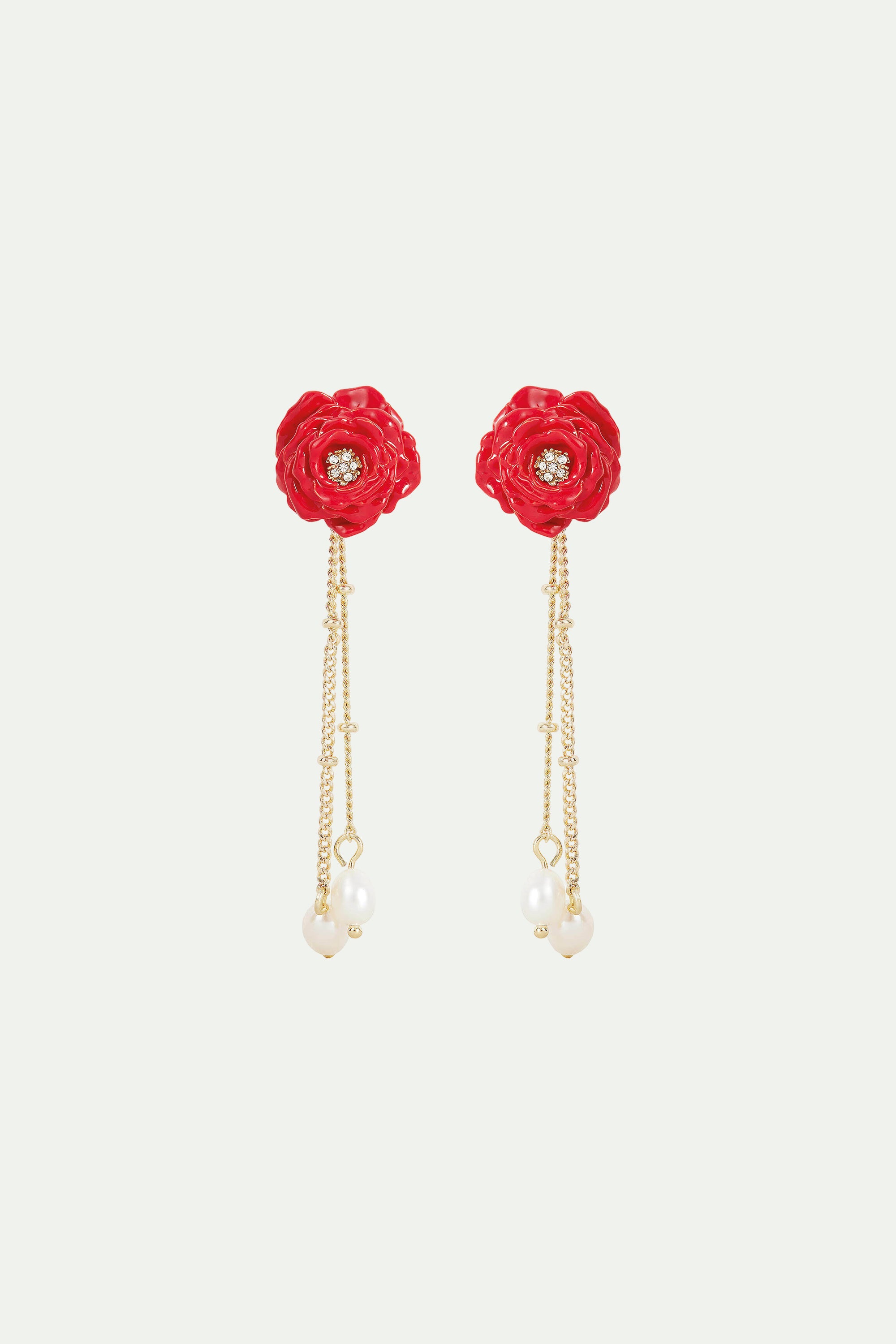 Red hellebore flower and faceted stone earringsRed hellebore flower and faceted stone earrings