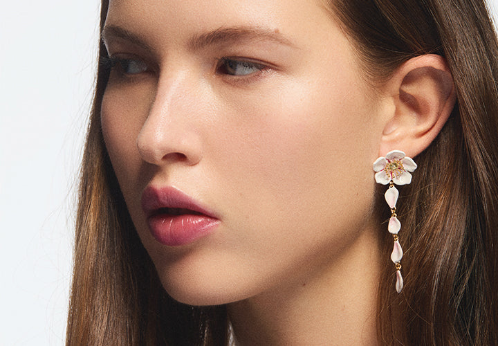 La floraison des cerisiers et les pétales de soie se disperse sur nos bijoux fleurs : colliers pendentifs fleurs, bagues papillon, boucles d'oreilles fleurs ou encore joncs fleuris. Retrouvez les fleurs de cerisier, papillons et zostérops du Japon dans la collection de bijoux fantaisie Hanami. Peintes à la main, ces parures de bijoux ajoute une touche printanière à votre style.