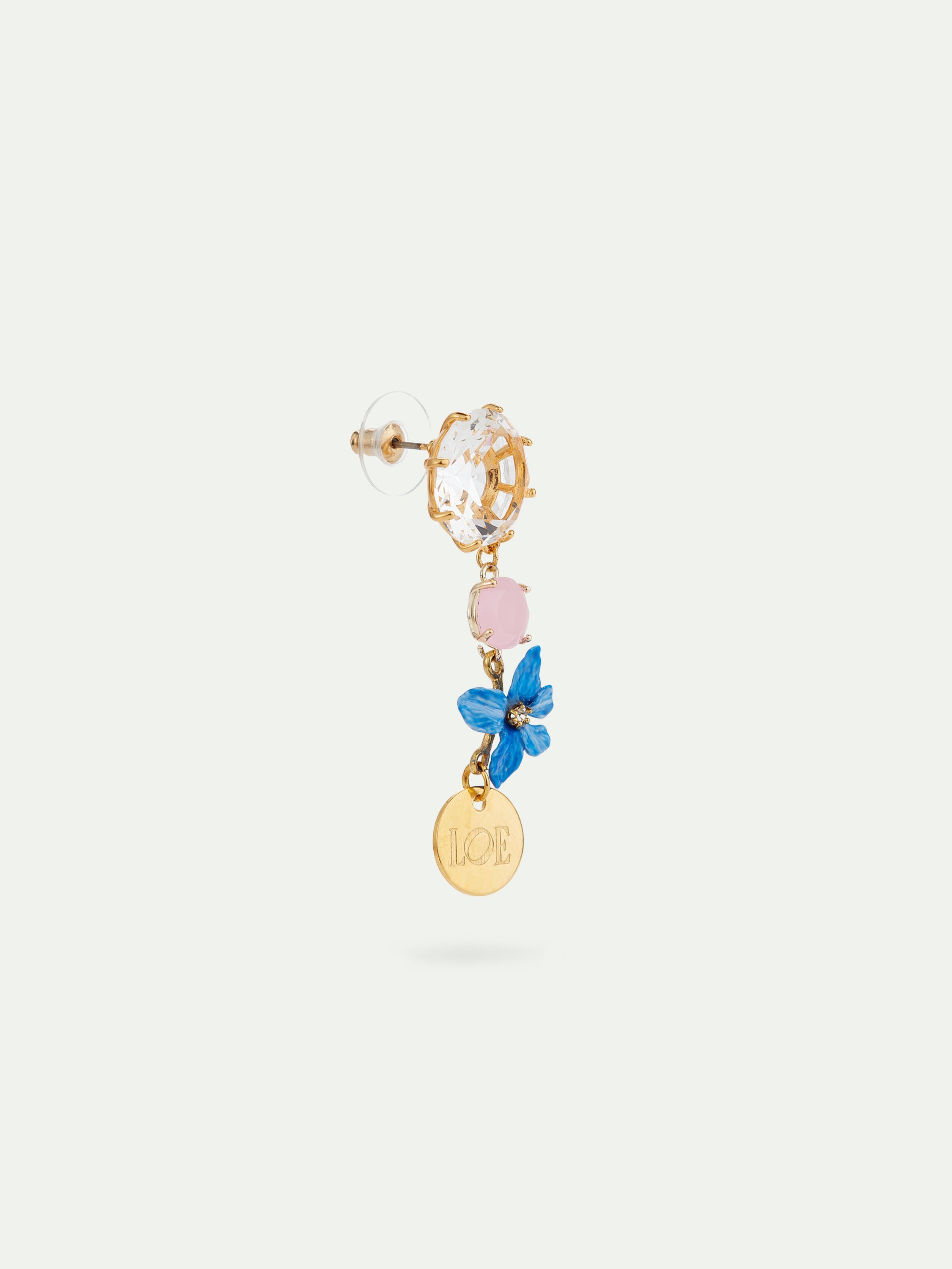 Faceted glass and pansy flower single earring