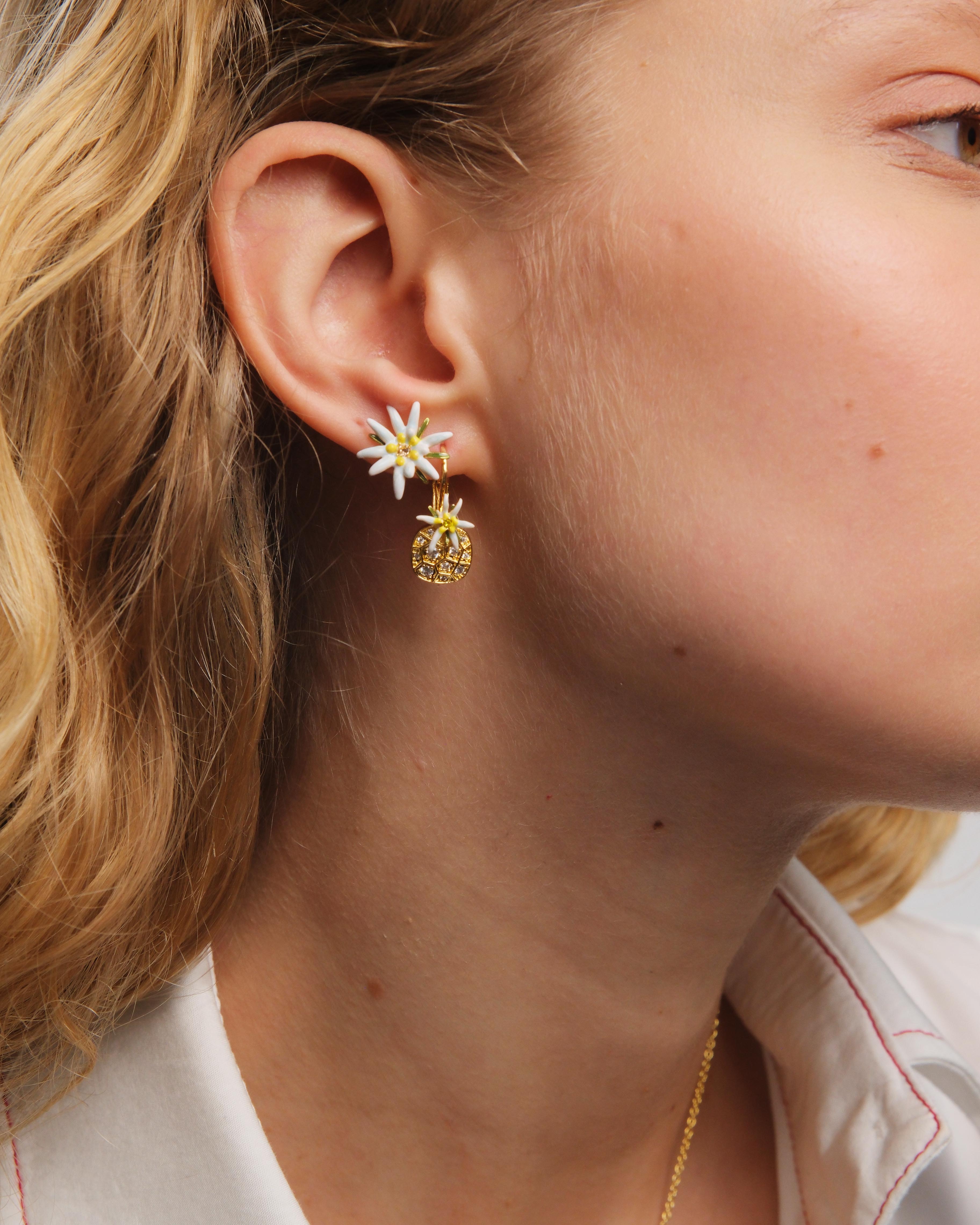 Verdadero clásico entre los pendientes, el pendiente botón se coloca legítimamente al primer lugar de las joyas de llevar. Este tipo de pendientes es lo más utilizado y se ofrece de varias formas, adaptándose a todo tipo de vestidos en todas ocasiones. Les Néréides propone varias colecciones muy ricas de bisutería y de las cuales una multitud de pendientes botón, el uno más creativo que el siguiente. Sus formas y tamaños variados permiten de combinarlos con sus vestidos brindándoles más carácter. Descubra la selección y los consejos de estilo de la Maison Les Néréides.
