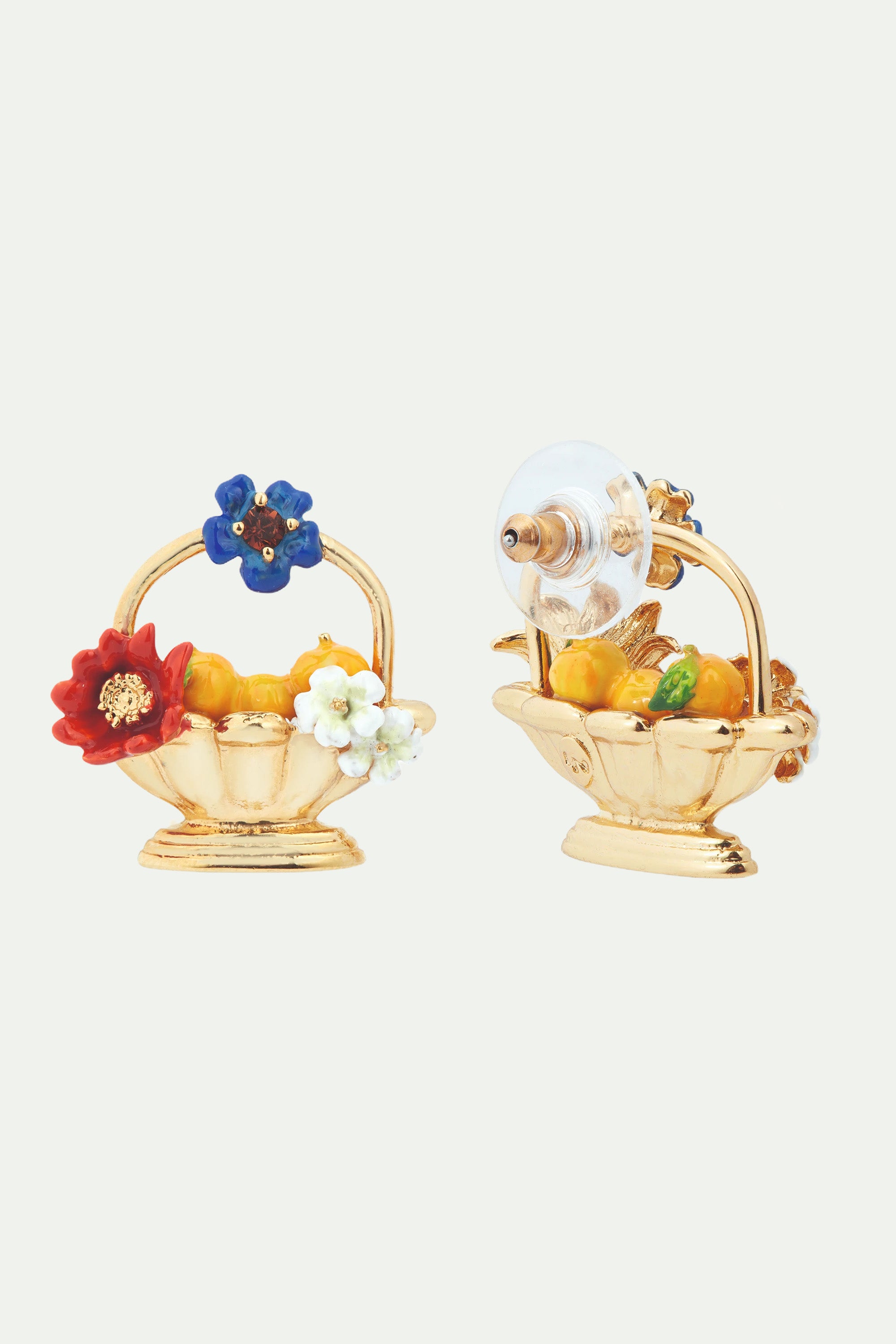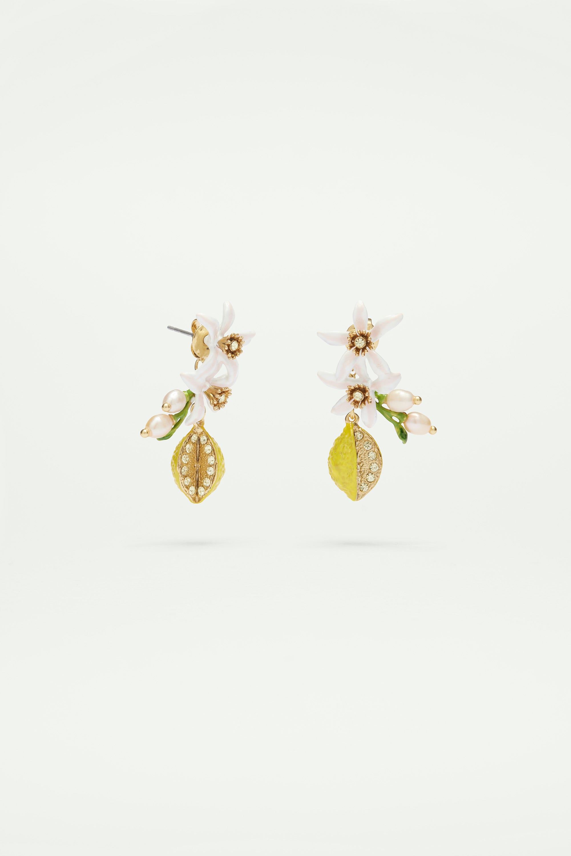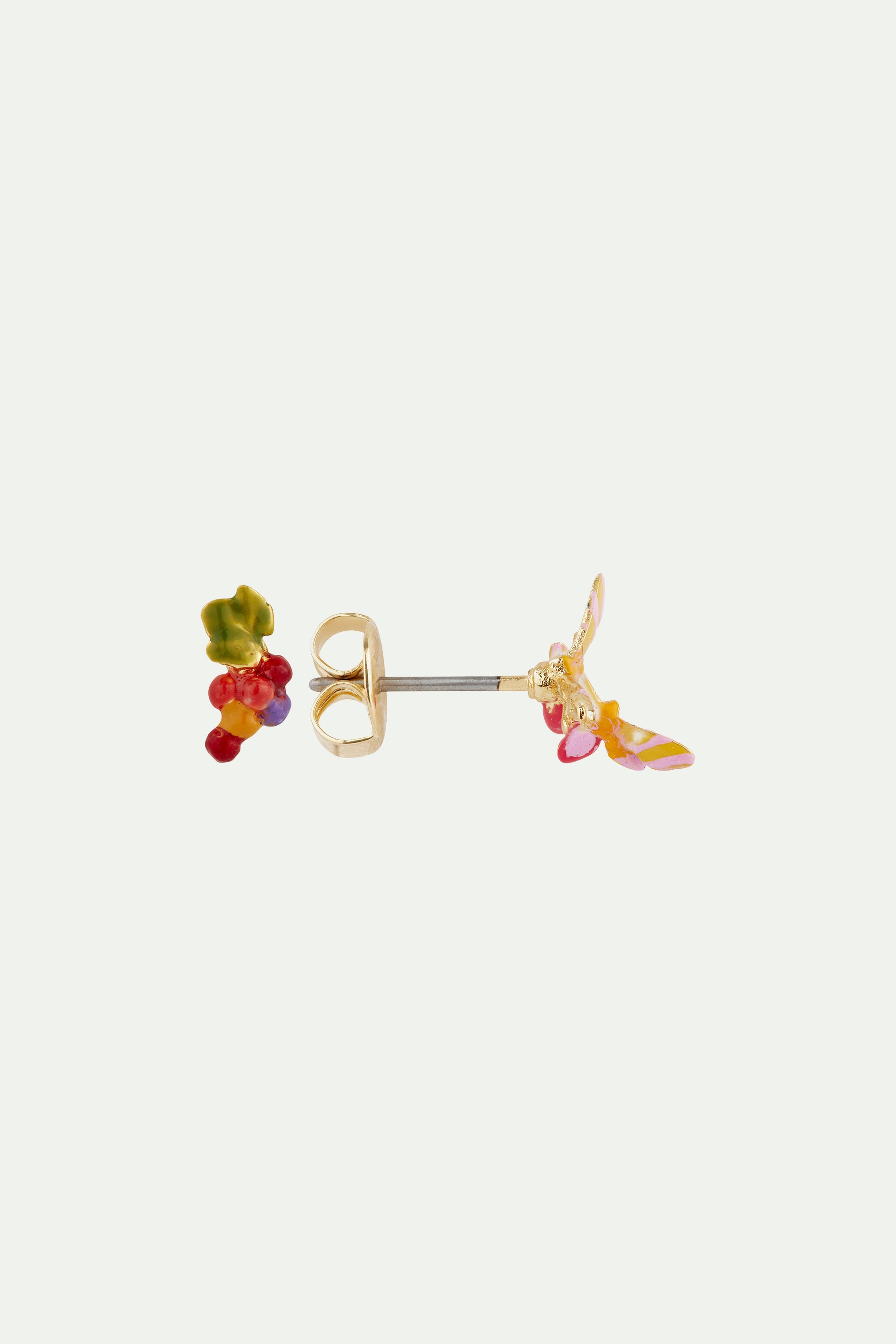 Pendientes bolitas asimétricos fresas silvestres y flores de rosa