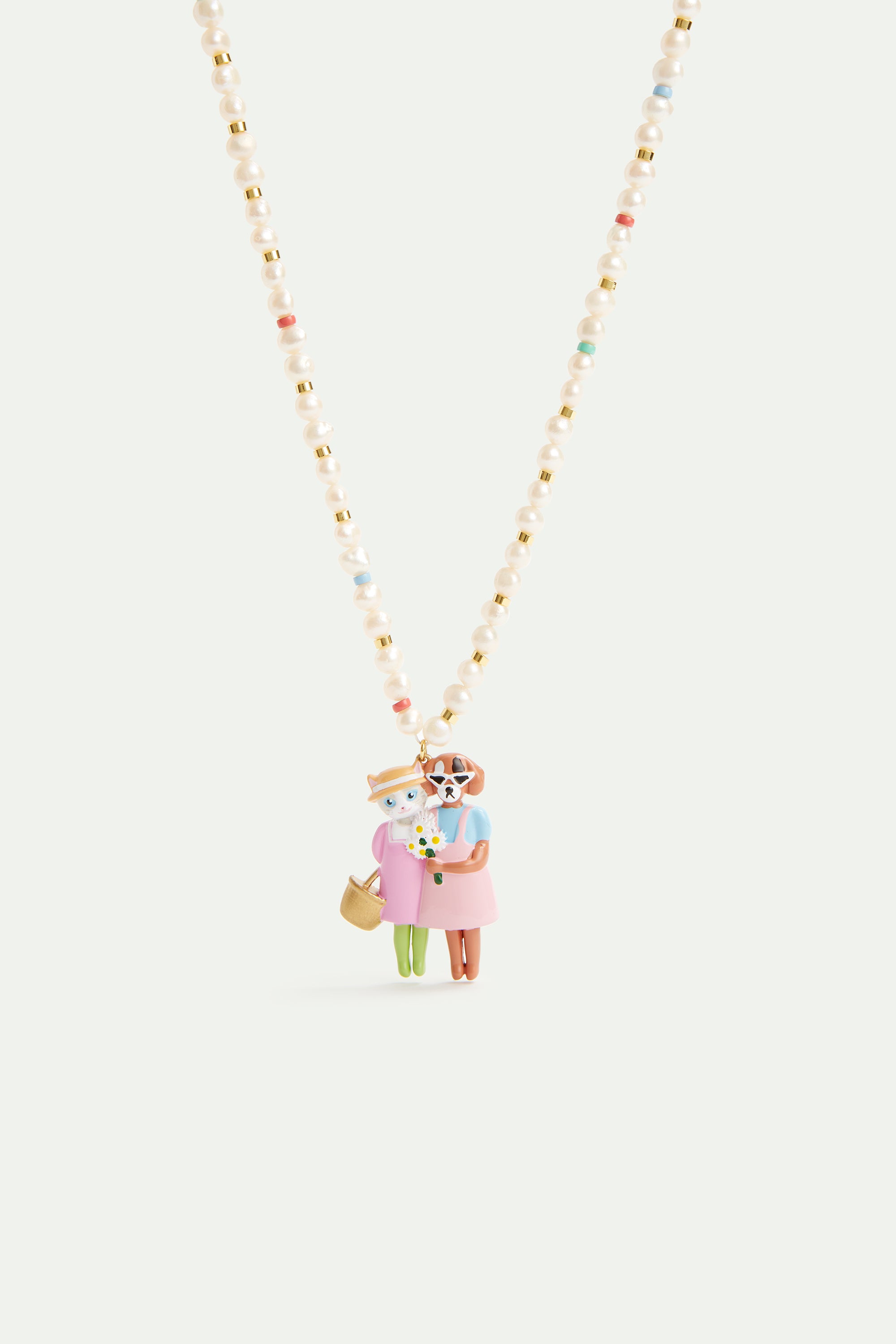 Collar colgante Hansel y Gretel con perlas de fantasía de colores