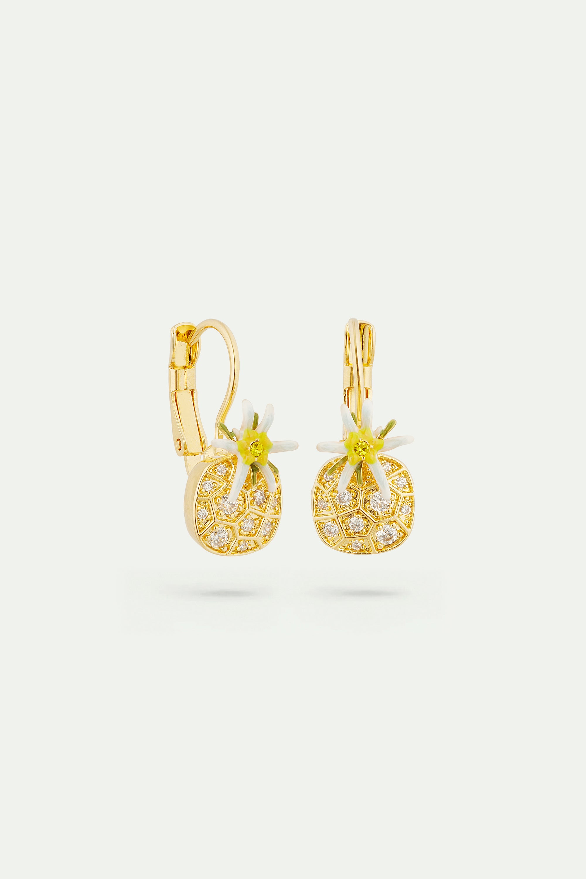 Pendientes tipo palanca con flor de edelweiss con pétalos blancos, amarillos y verdes. La flor va acompañada de óxidos de circonio, engastados en forma de panal. Esta temporada, Les Néréides Loves ...Voir plus