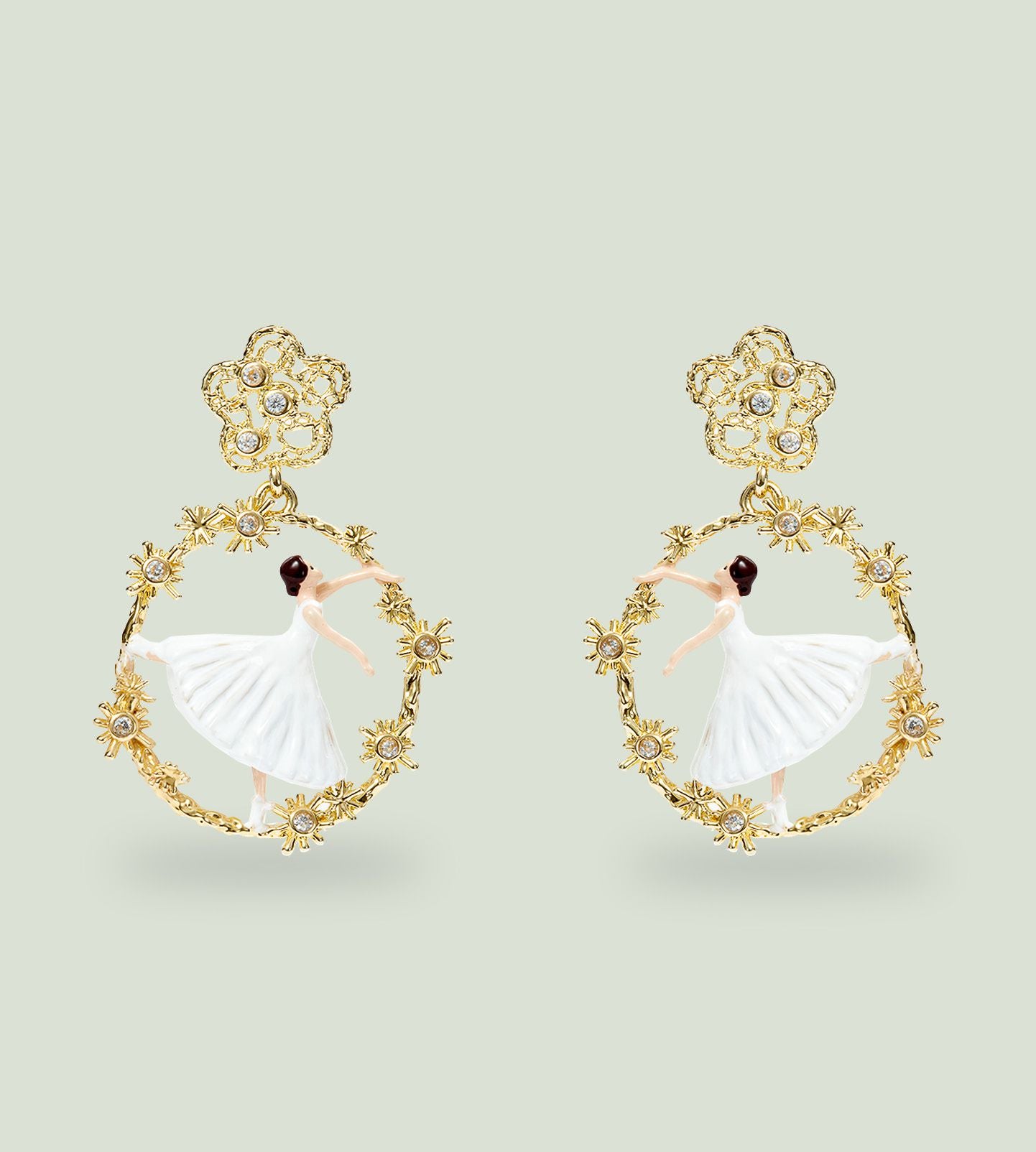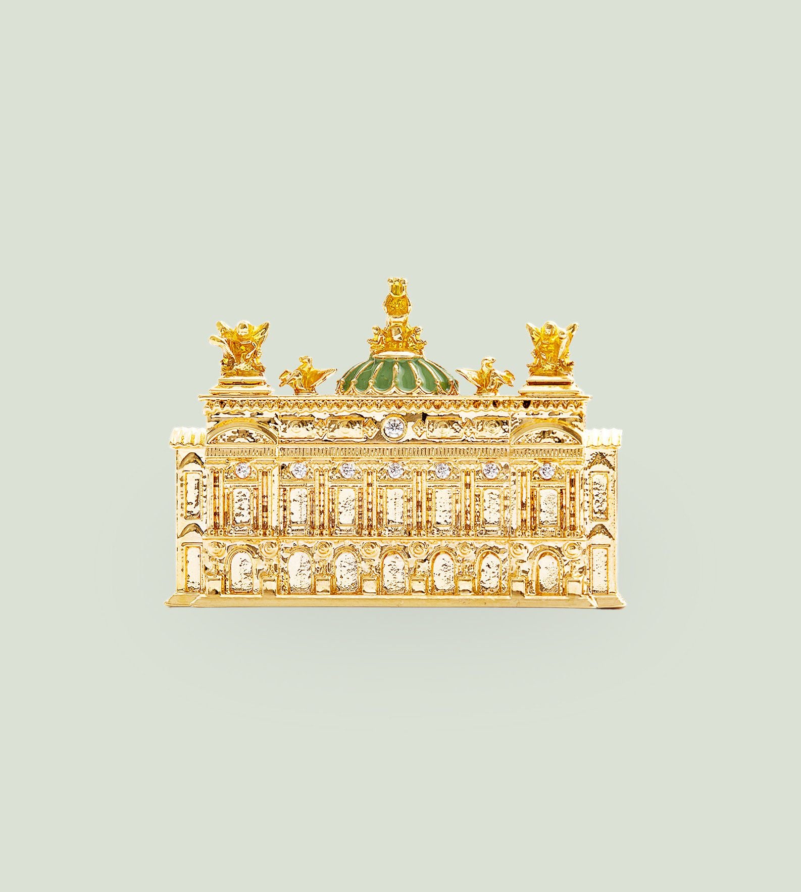 La Danse s'inspire du célèbre ballet Giselle, le personnage romantique est interprété par une ballerine finement émaillée à la main. Les pétales en filigrane dorées à l'or fin côtoient les emblématiques fleurs de Lys qui ornent les couronnes des nymphes. L'Architecture célèbre la majestueuse façade parisienne du Palais Garnier. Le Costume met à l'honneur les symboles de la danse : le chausson et son ruban, pièces intemporelles qui séduiront toutes les amoureuses du ballet.