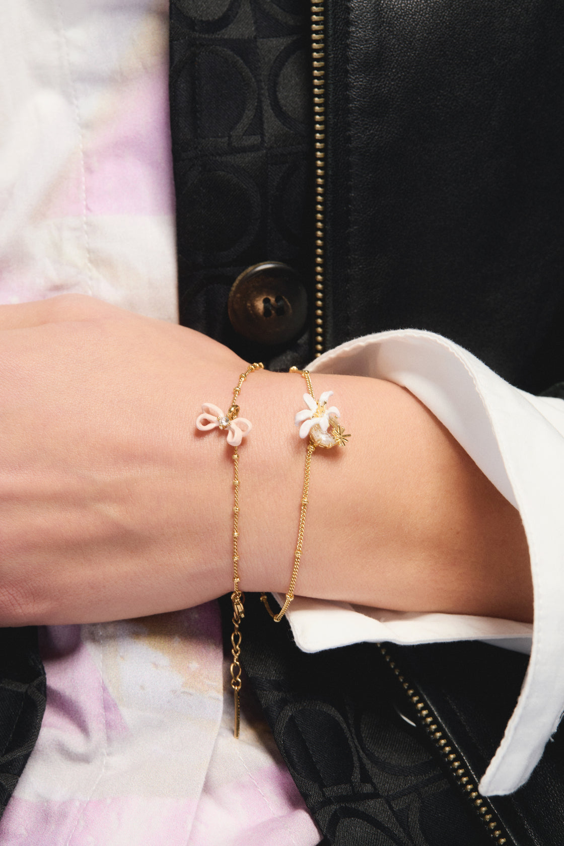 Chaque bijou naît d’un dessin tout droit sorti de l’imagination des créateurs. Comme en haute joaillerie, les pièces sont « gouachées ». Les bijoux sont ensuite fabriqués et subtilement peints à la main selon un travail de mise en couleur artisanal. Chaque détail floral ou animalier est coloré au pinceau avec une grande subtilité dans le choix des couleurs. Une tâche minutieuse, où chaque détail est le résultat du travail à la main d’un artisan. Par ce travail sur le geste, chaque pièce est unique.