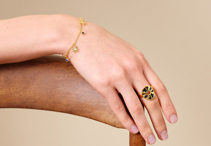 Bracelet charms étoiles dorées et pierre bleu nuit