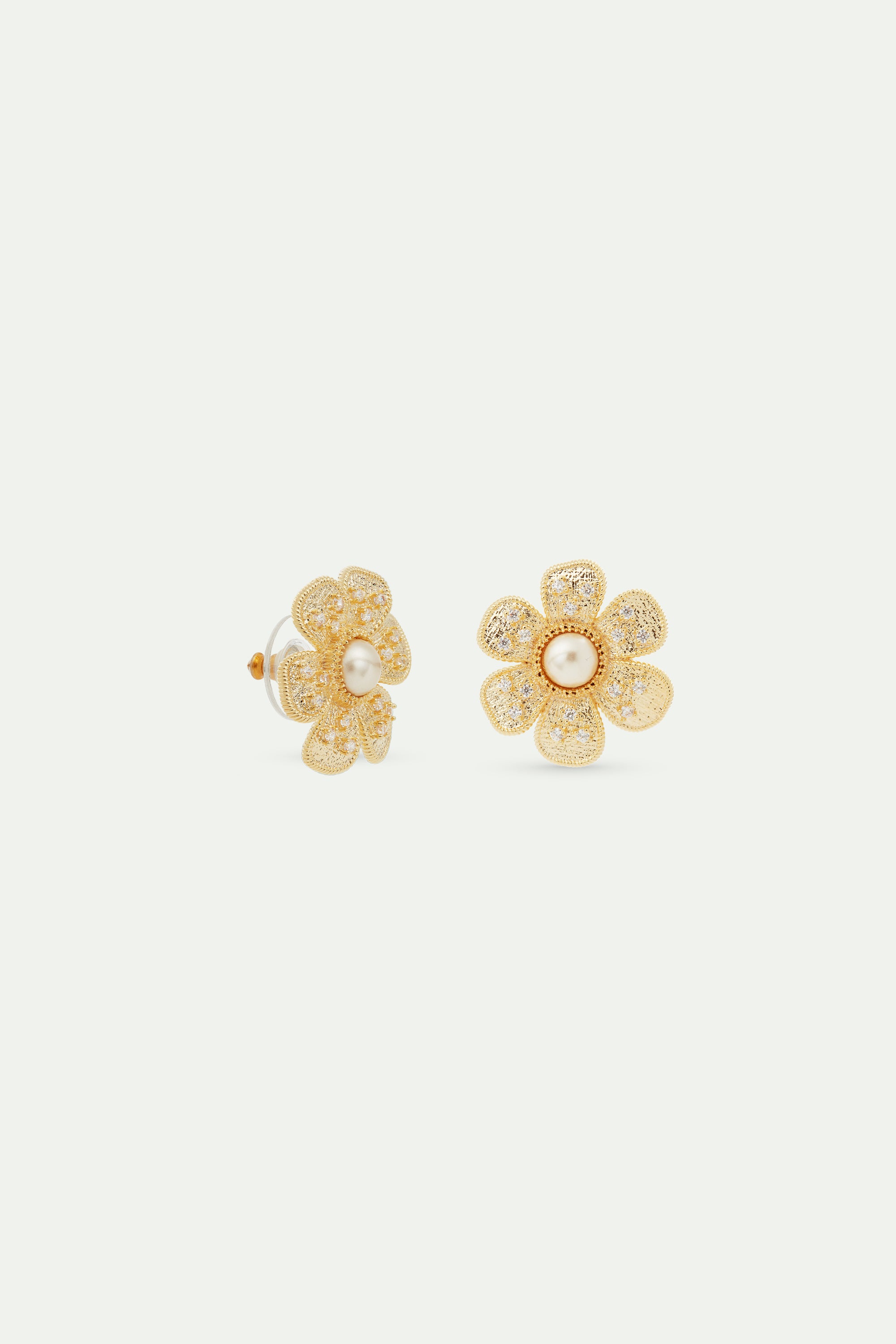 Boucles d'oreilles dormeuses fleur en laiton doré