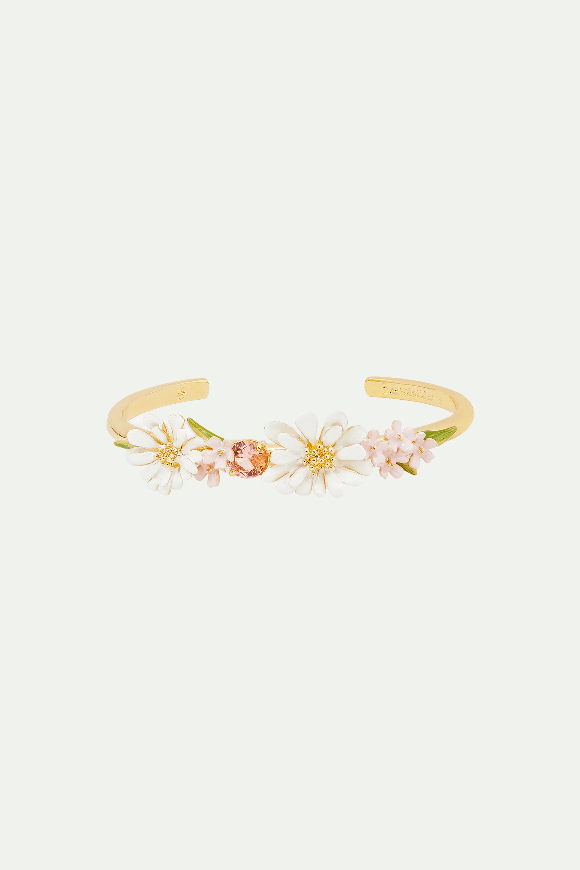 Bracelet jonc bouquet de fleurs et pierre ronde