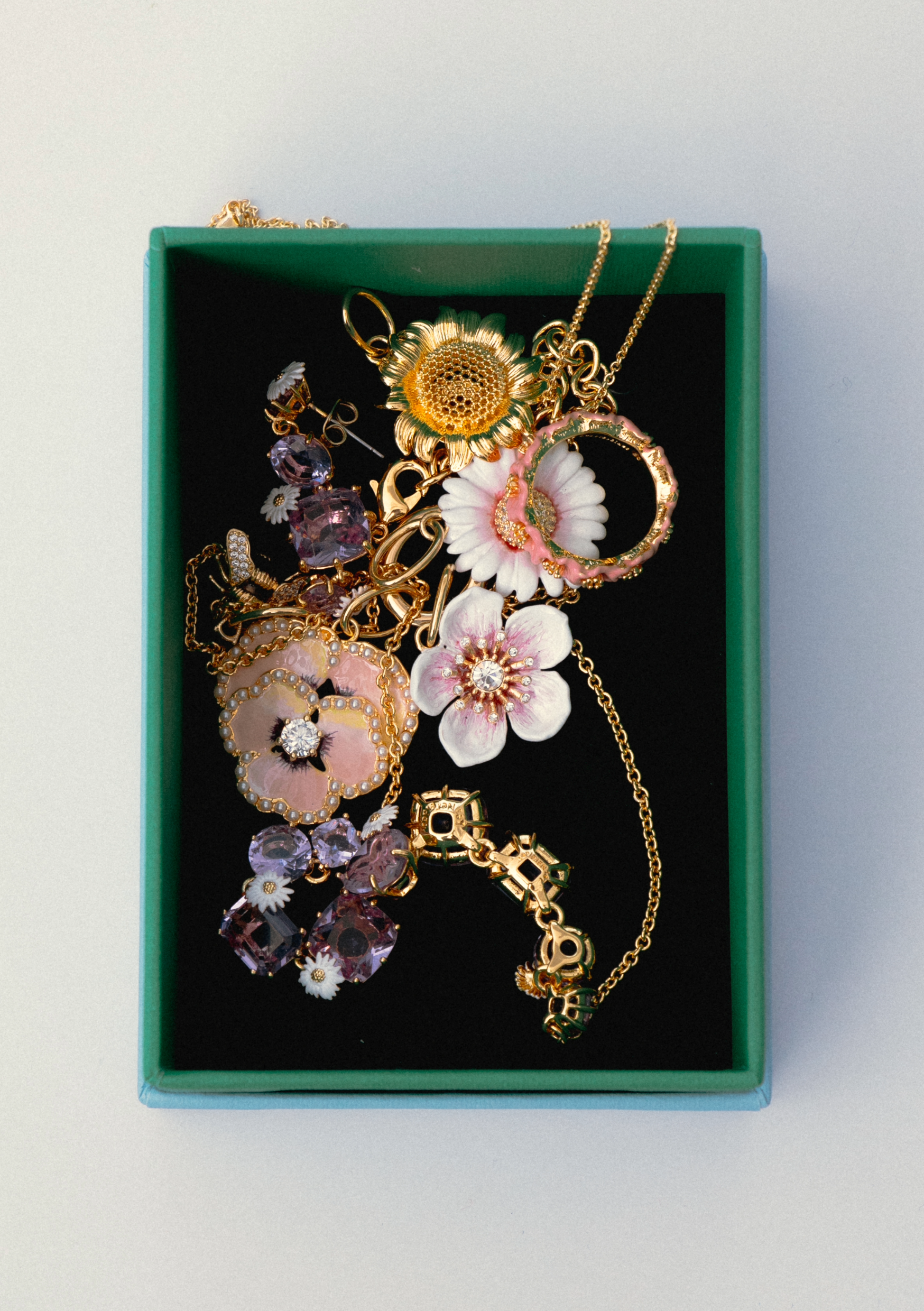 Chaque collection est pensée comme une ode à la végétation, aux bestioles et à la mer, à la joie simple de les contempler avec les yeux pétillants d’un enfant. C’est cette fantaisie onirique qui a trait au sensible et parle à chacun dans son authenticité pure, à travers des bijoux créés en atelier à Paris.