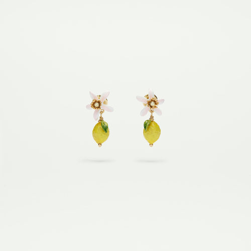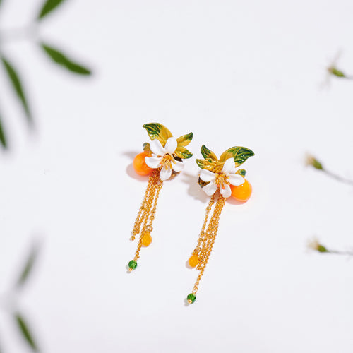 Boucles d'oreilles orange, fleur d'oranger et chaînes