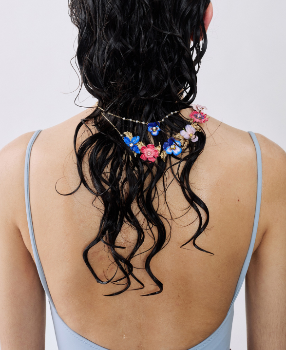 Collier Fin Iris de Sibérie et Verre Facetté