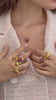 Chaque bijou naît d’un dessin tout droit sorti de l’imagination des créateurs. Comme en haute joaillerie, les pièces sont « gouachées ». Les bijoux sont ensuite fabriqués et subtilement peints à la main selon un travail de mise en couleur artisanal. Chaque détail floral ou animalier est coloré au pinceau avec une grande subtilité dans le choix des couleurs. Une tâche minutieuse, où chaque détail est le résultat du travail à la main d’un artisan. Par ce travail sur le geste, chaque pièce est unique.