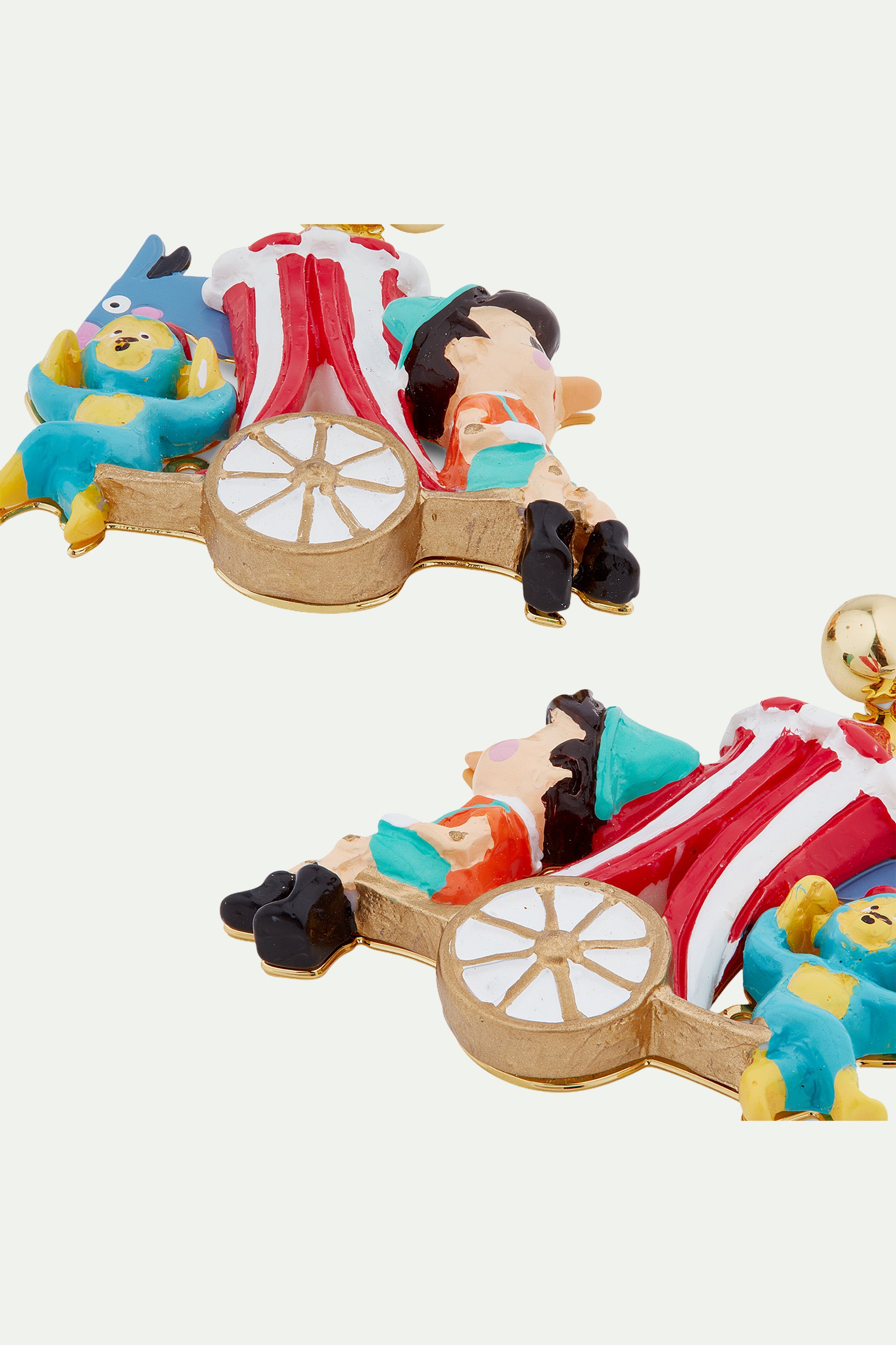 Chaque bijou naît d’un dessin tout droit sorti de l’imagination des créateurs. Comme en haute joaillerie, les pièces sont « gouachées ». Les bijoux sont ensuite fabriqués et subtilement peints à la main selon un travail de mise en couleur artisanal. Chaque détail floral ou animalier est coloré au pinceau avec une grande subtilité dans le choix des couleurs. Une tâche minutieuse, où chaque détail est le résultat du travail à la main d’un artisan. Par ce travail sur le geste, chaque pièce est unique.