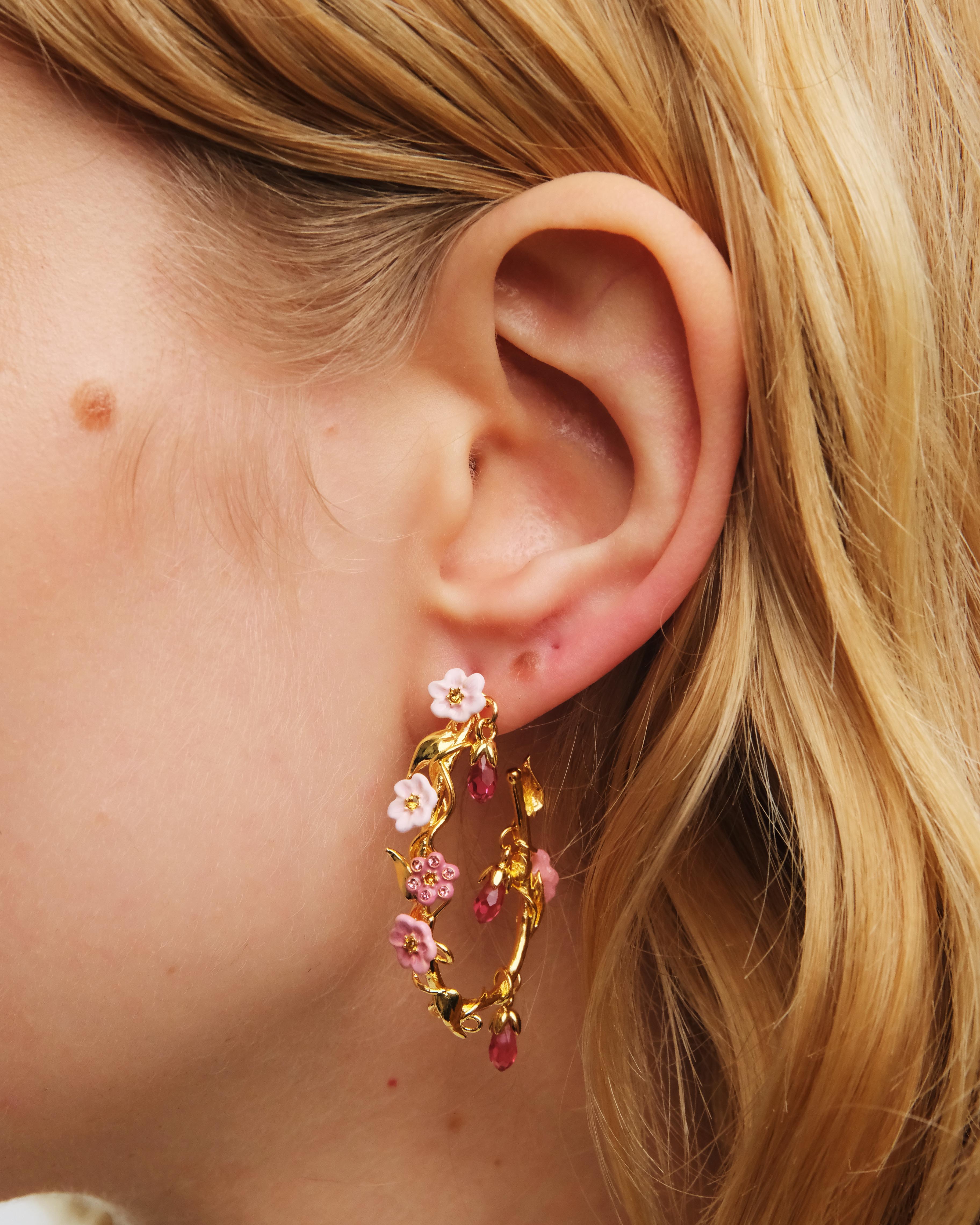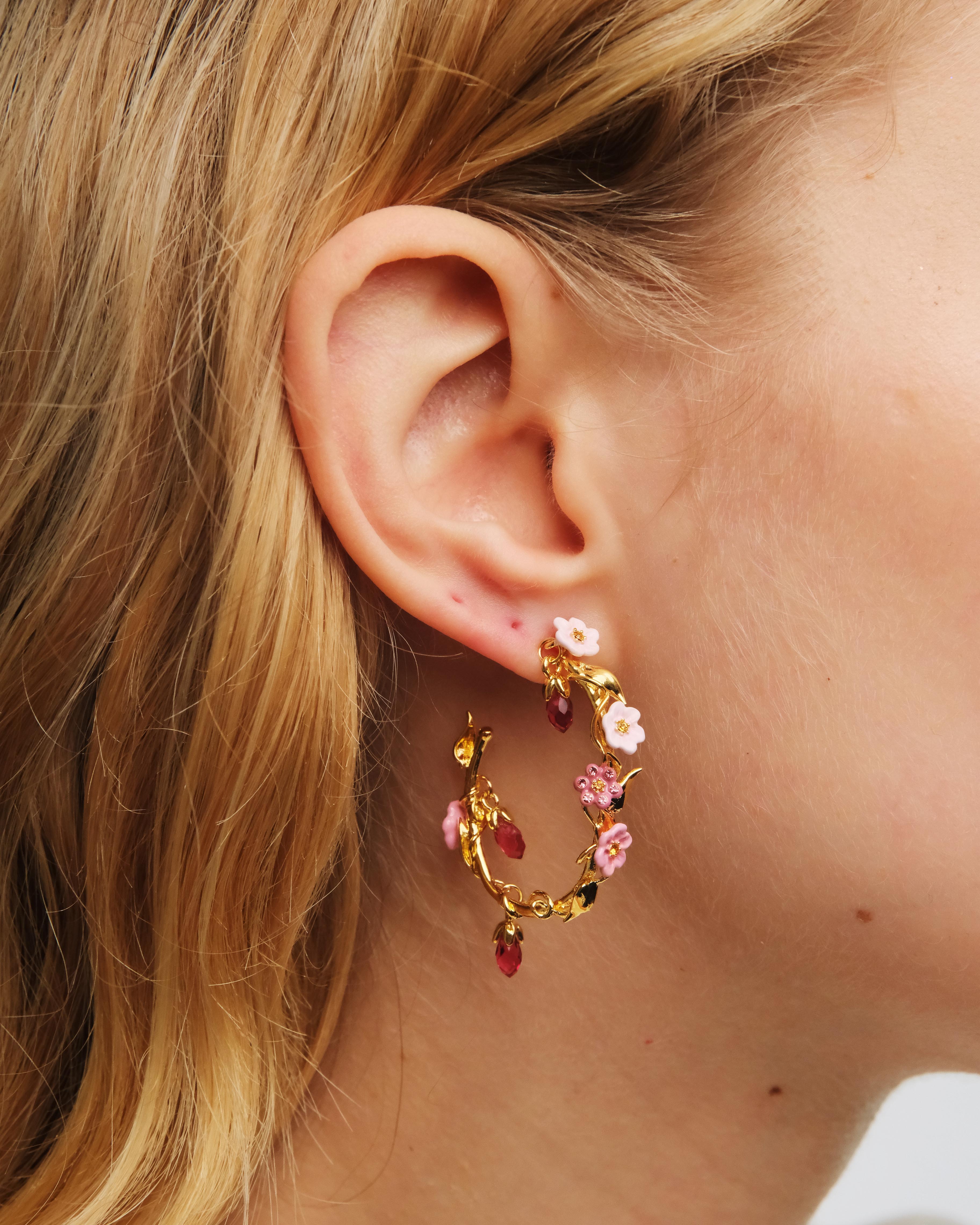 Boucles d'oreilles créoles fleurs de jasmin roses