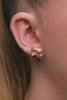 Paire de boucles d'oreilles fleur d'hellébore rouge délicatement posée sur une pierre facettée translucide. La collection Velours d'Hiver honore les dernières fleurs de la saison comme le perce-...Voir plus