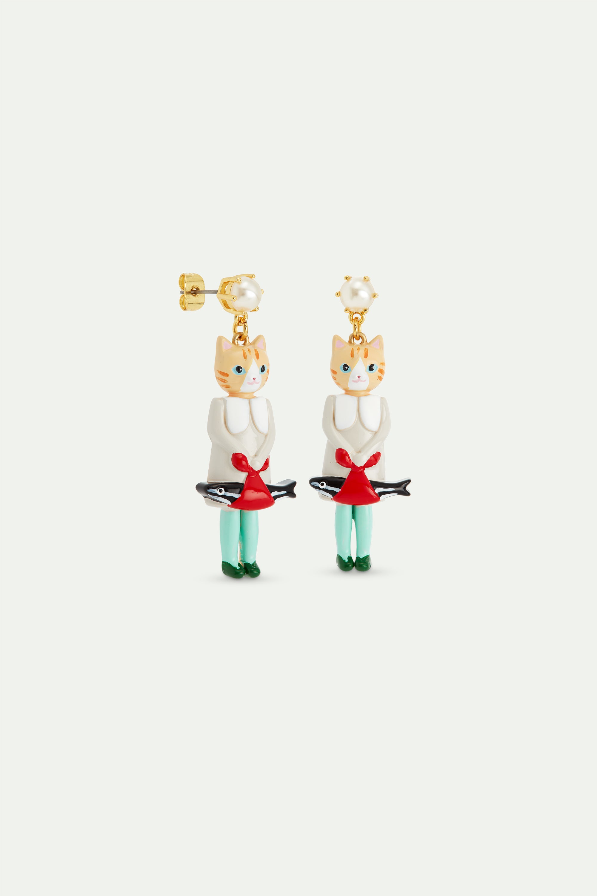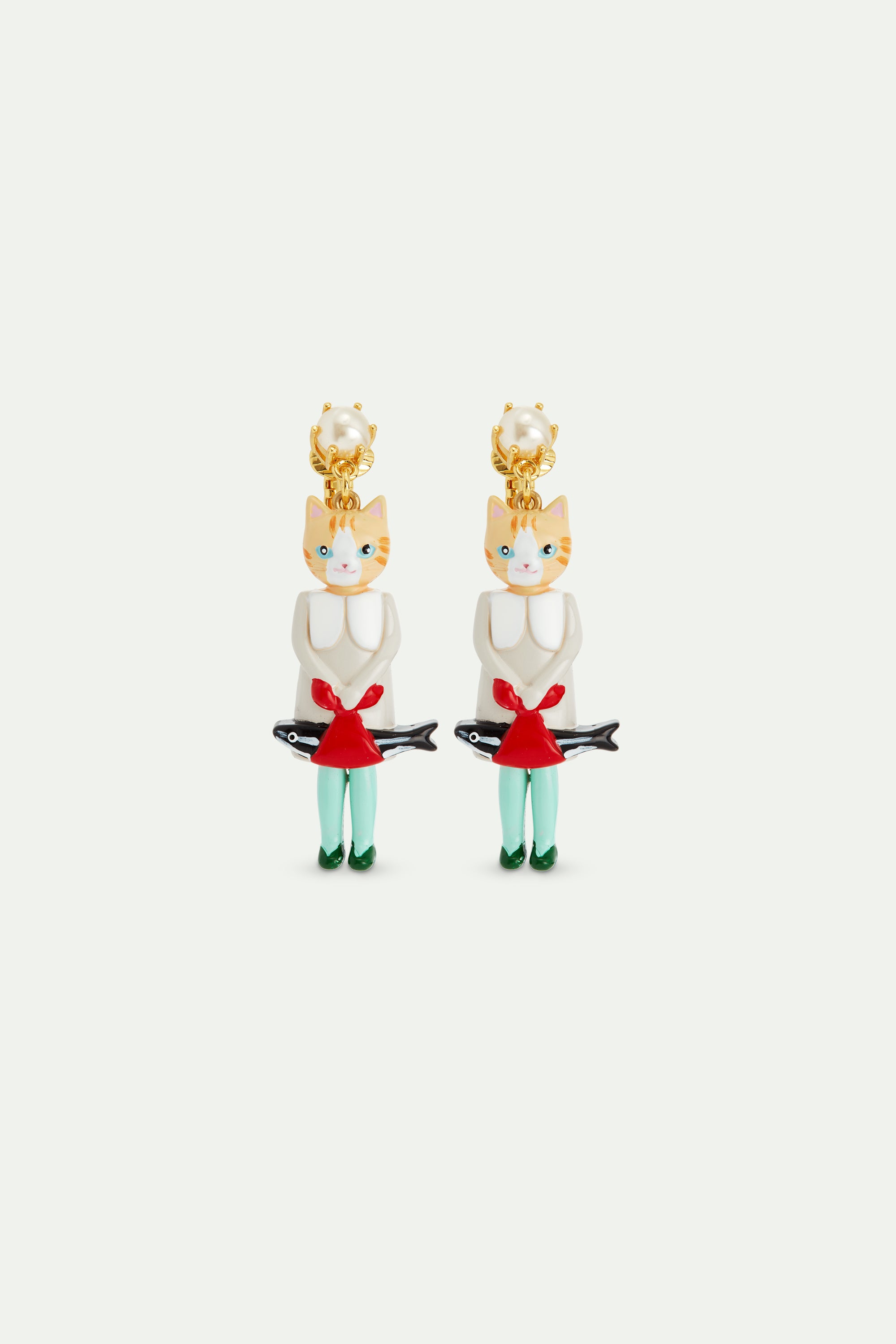 Boucles d'oreilles pendantes chat roux et poisson