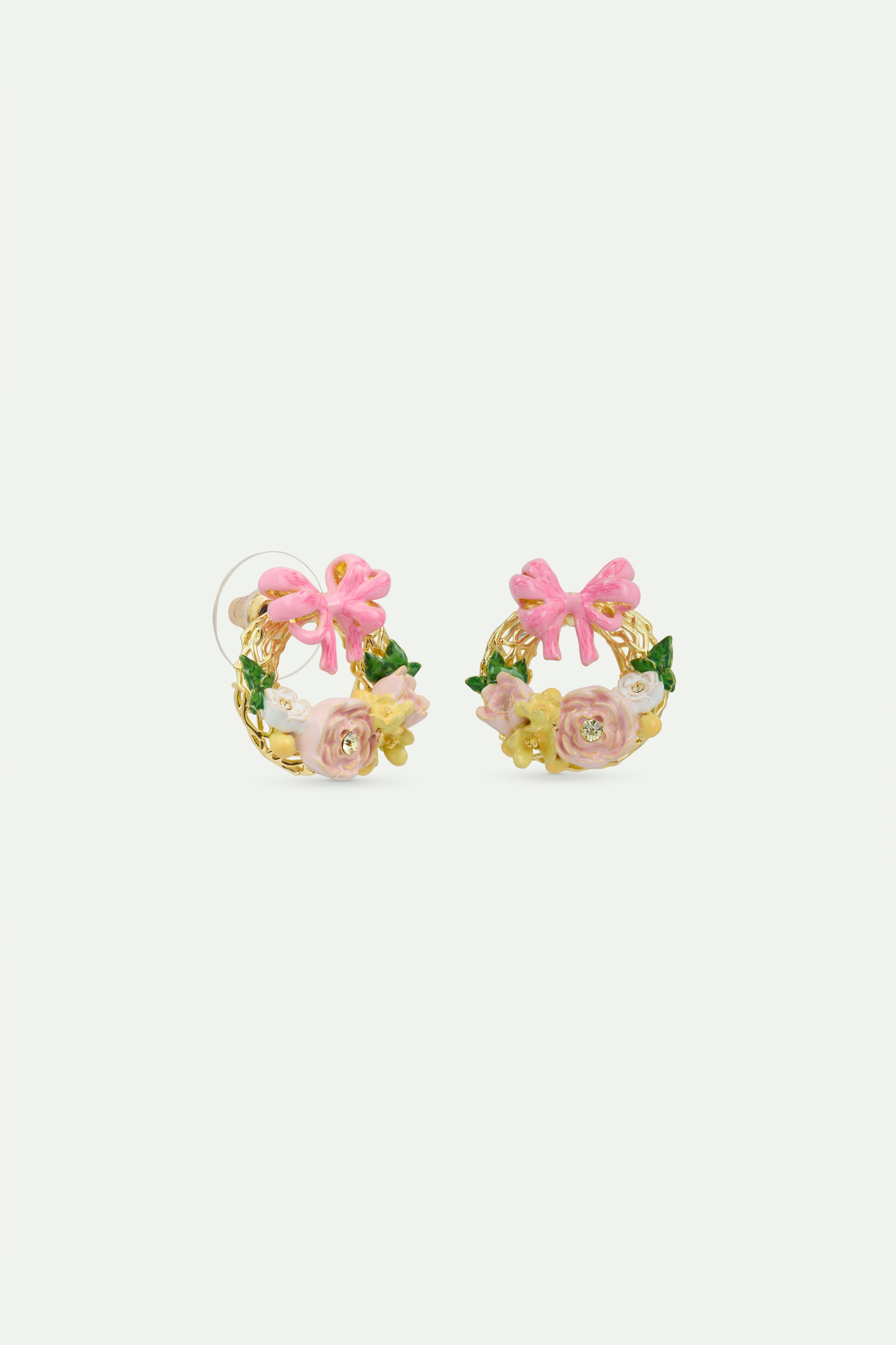 Boucles d'oreilles tiges couronne de fleurs et noeud rose