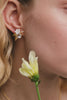 Boucles d'oreilles tiges jasmin officinal blanc, cristal facetté et perle fantaisie