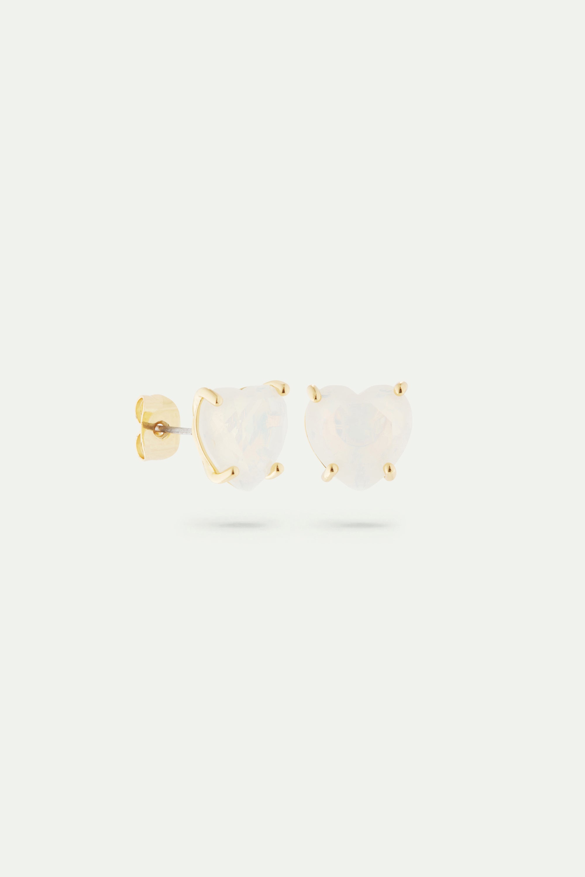 Boucles d'oreilles tiges pierre cœur La Diamantine blanc opalescent