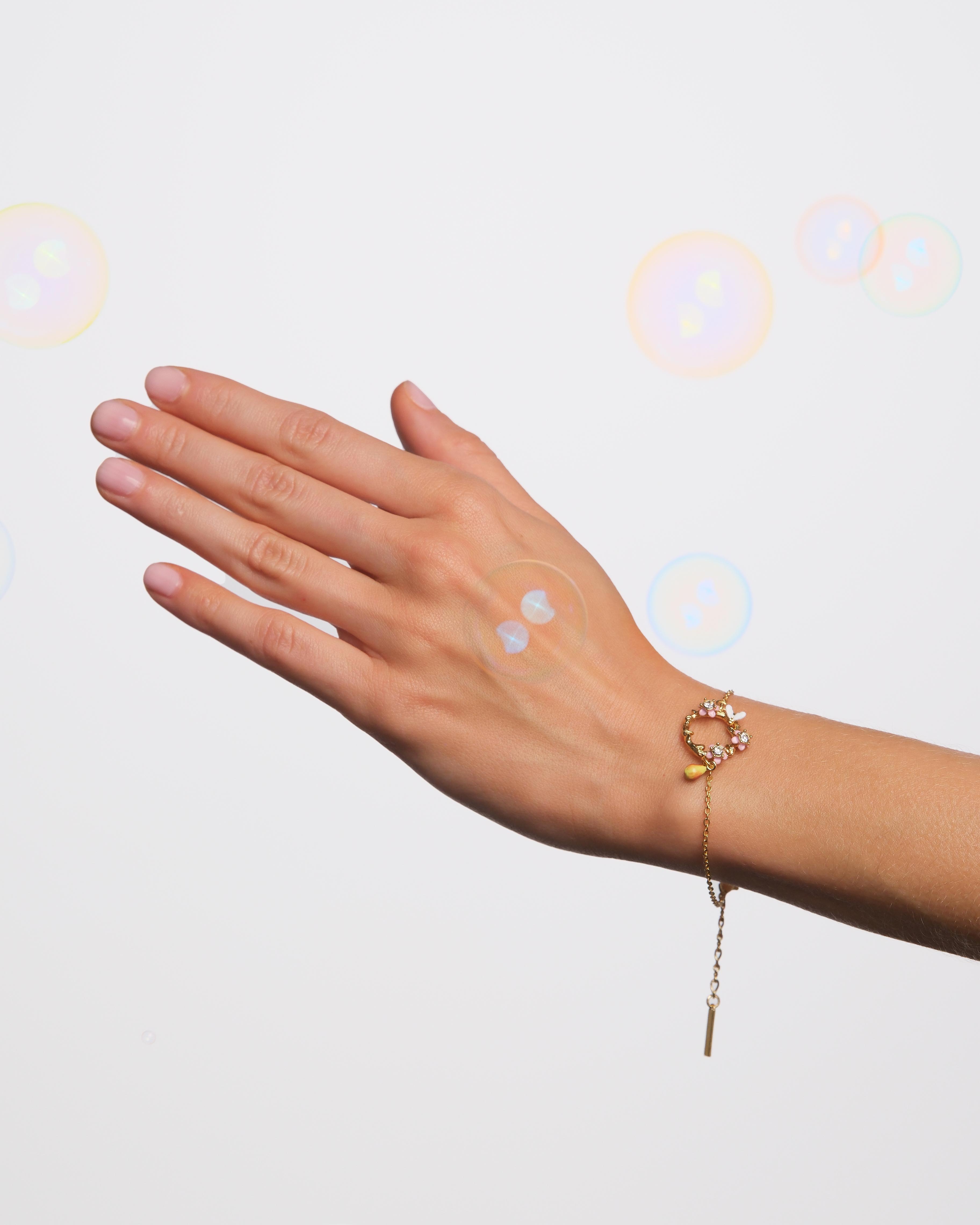 Chaque bijou naît d’un dessin tout droit sorti de l’imagination des créateurs. Comme en haute joaillerie, les pièces sont « gouachées ». Les bijoux sont ensuite fabriqués et subtilement peints à la main selon un travail de mise en couleur artisanal. Chaque détail floral ou animalier est coloré au pinceau avec une grande subtilité dans le choix des couleurs. Une tâche minutieuse, où chaque détail est le résultat du travail à la main d’un artisan. Par ce travail sur le geste, chaque pièce est unique.