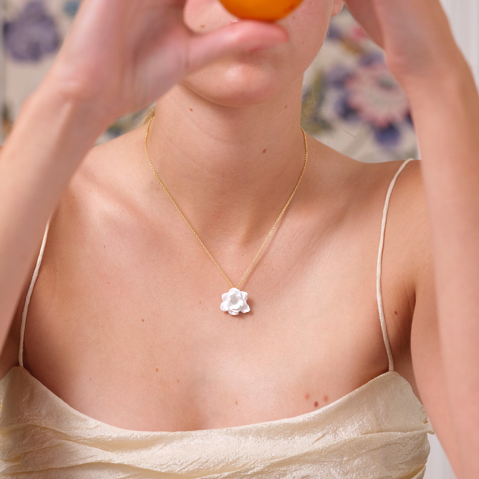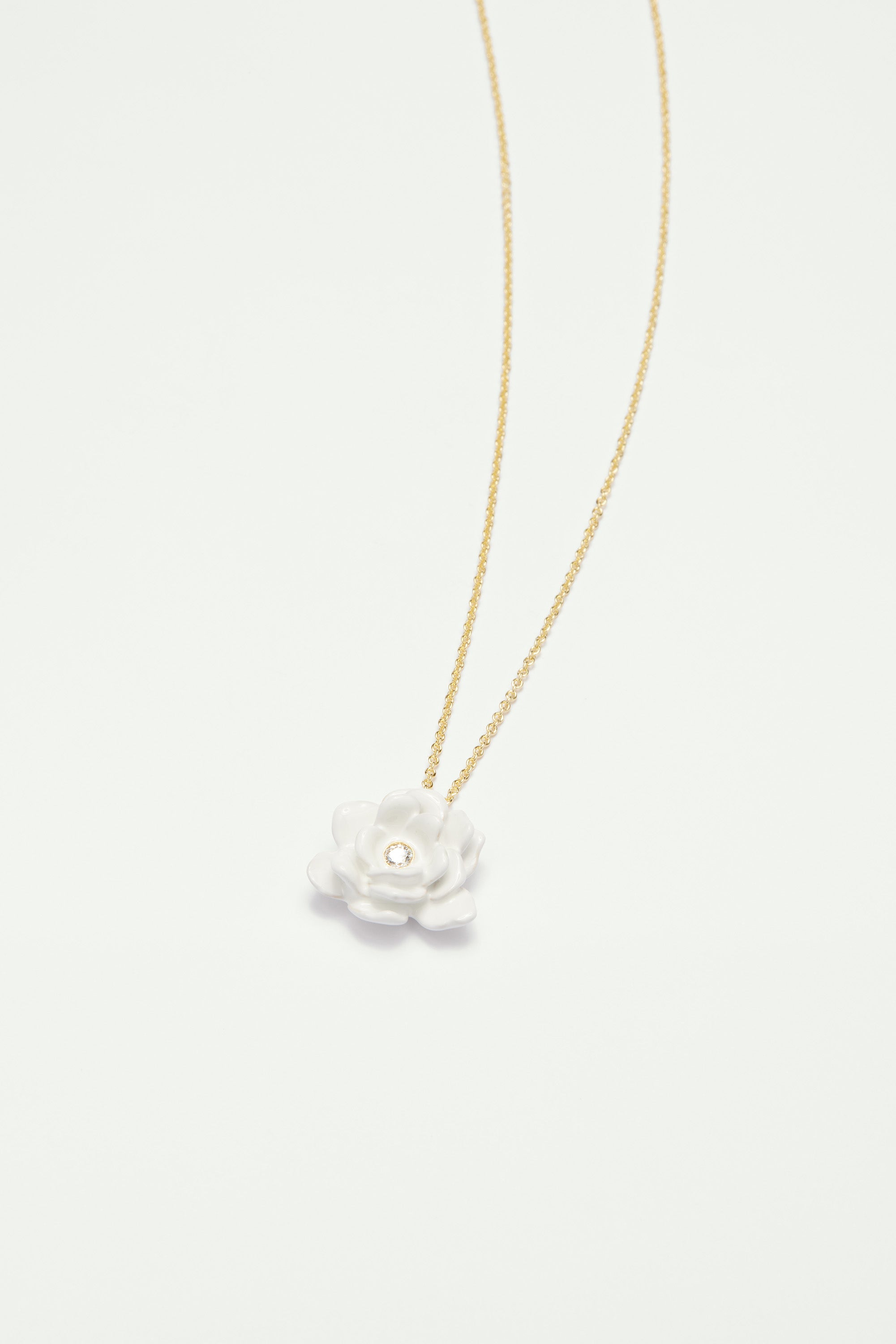 Collier fin gardénia et pierre en verre taillé