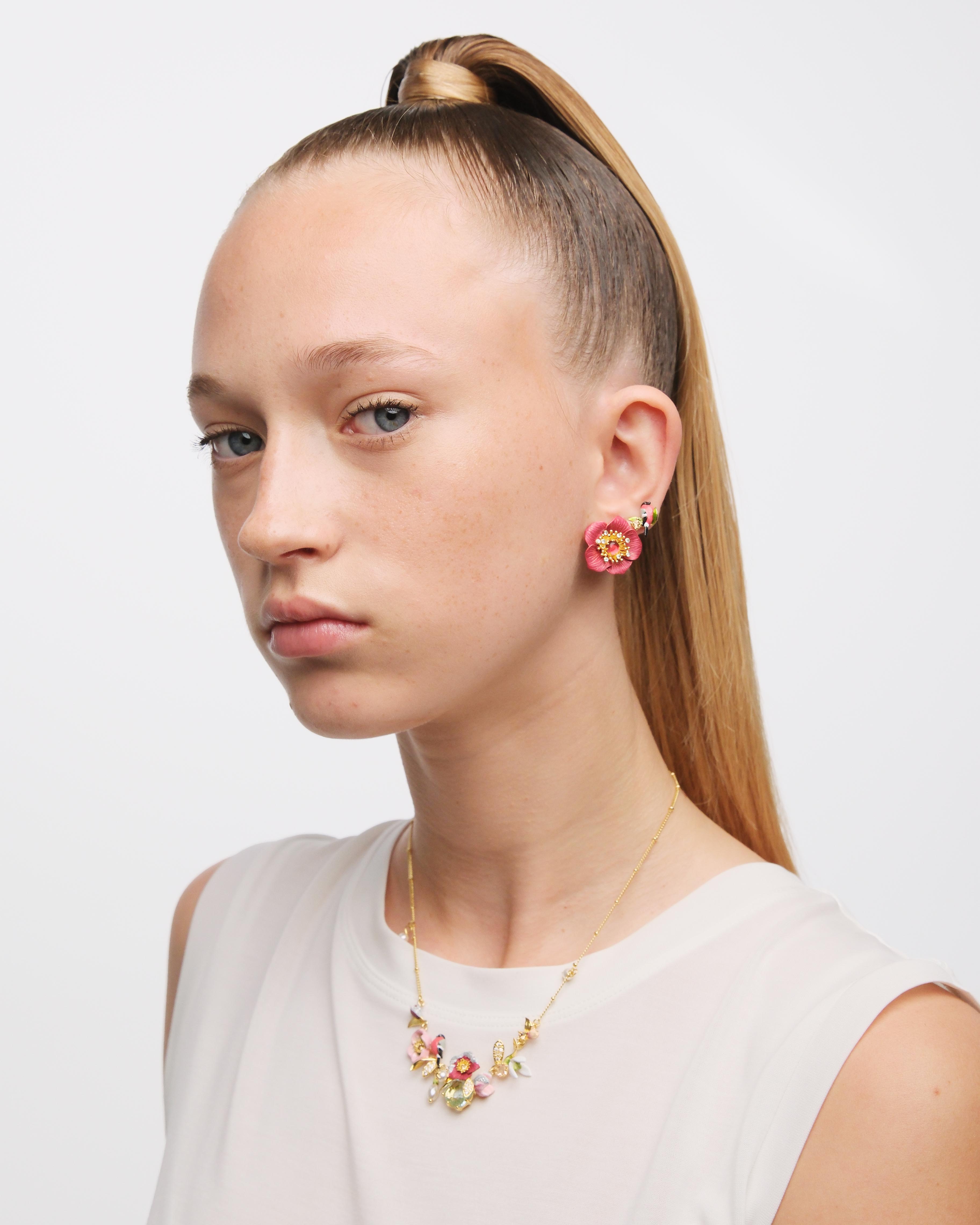 Collier plastron fleurs d'hellébore, perce-neige, bouvreuil pivoine et gui